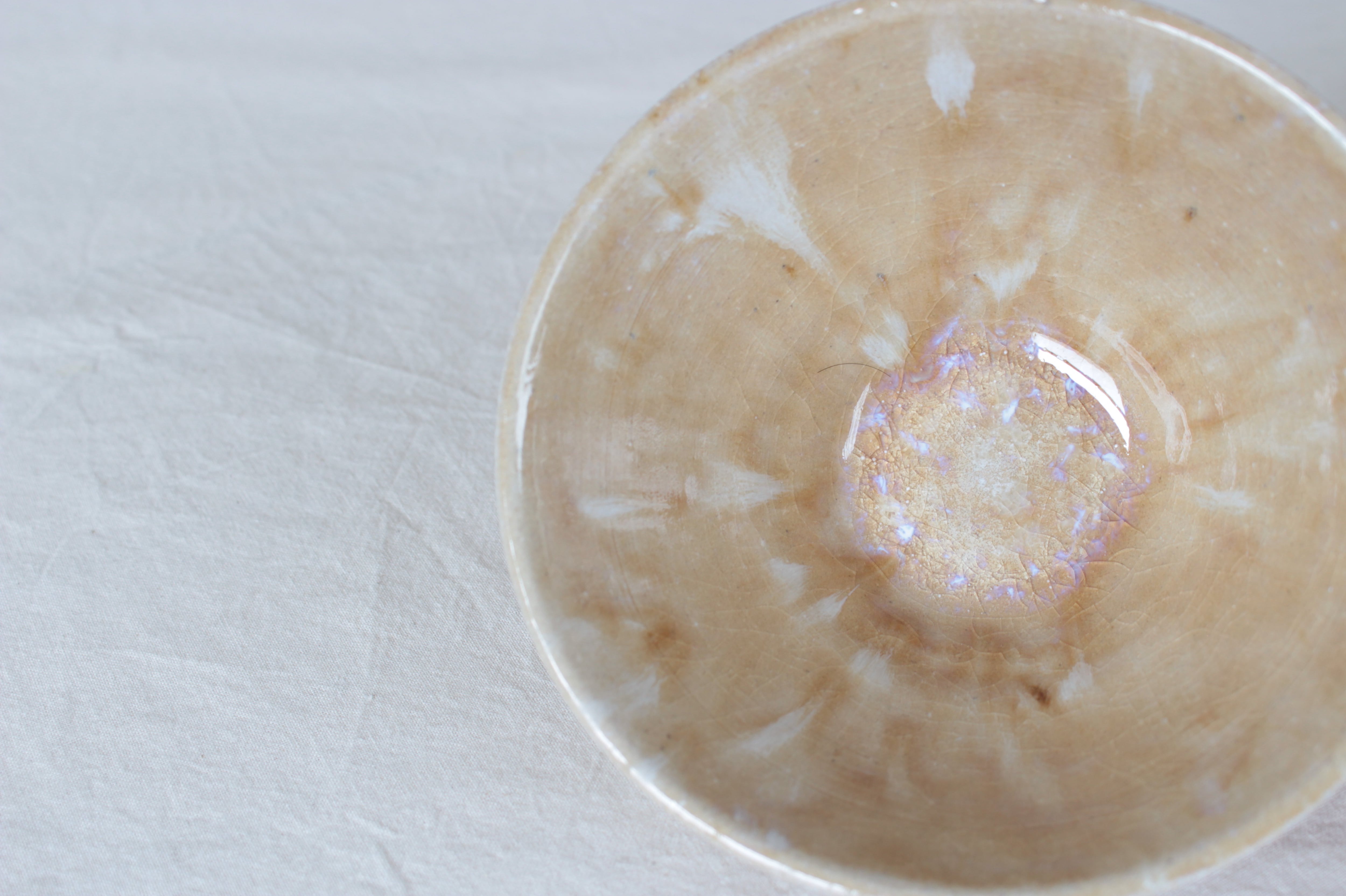 内底では白濁した釉溜まりが