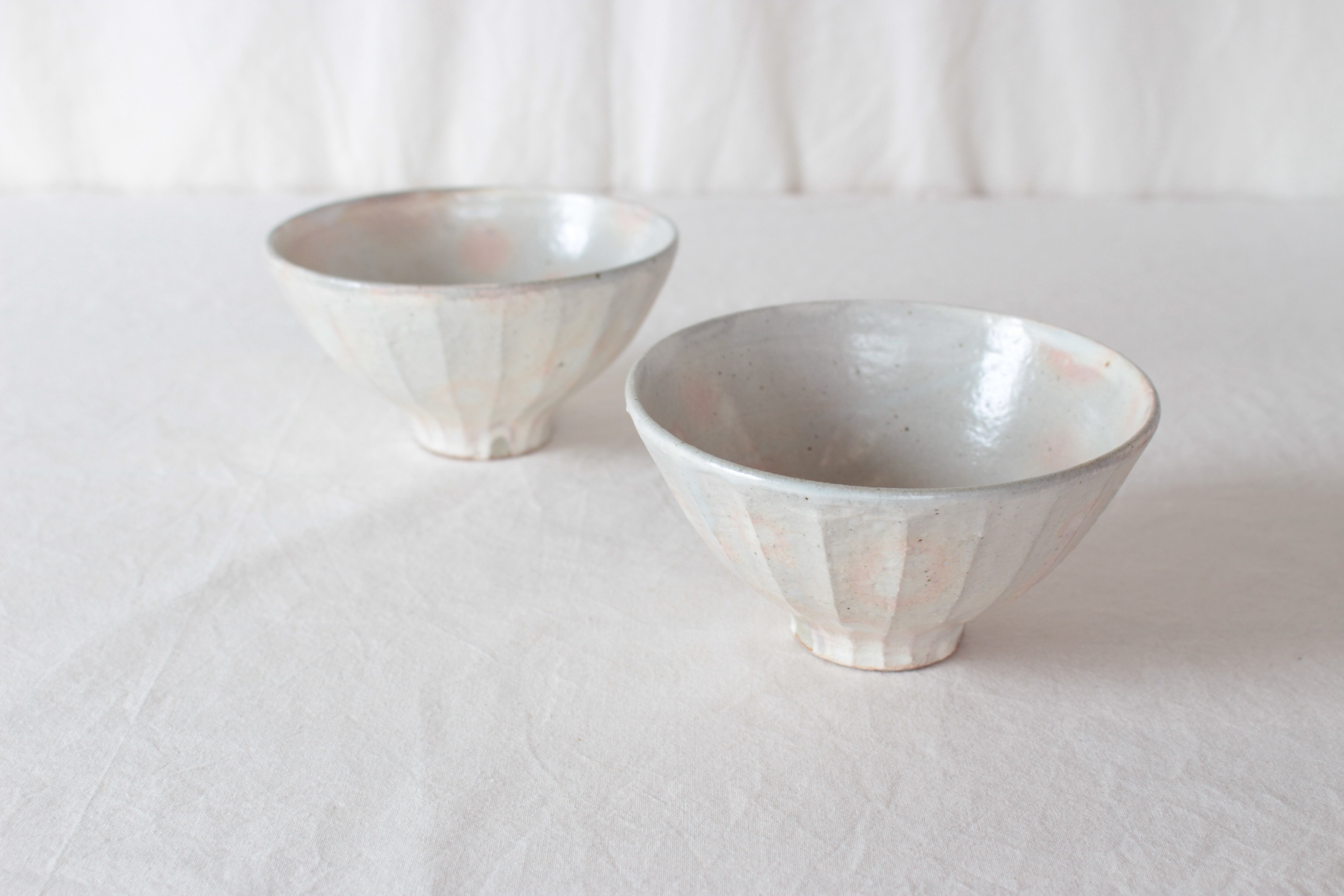 【田山健司】粉引 しのぎ 飯碗 A・B