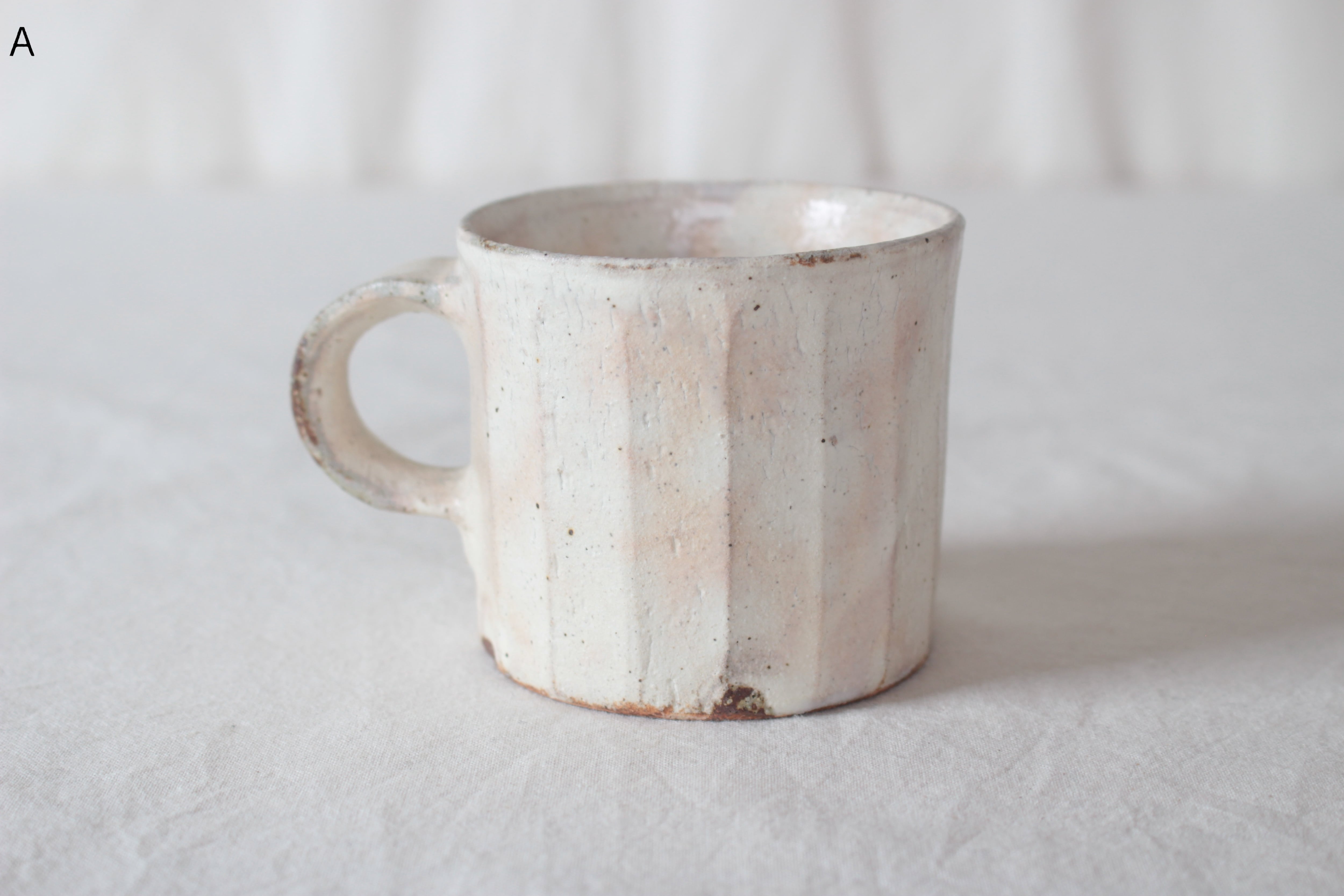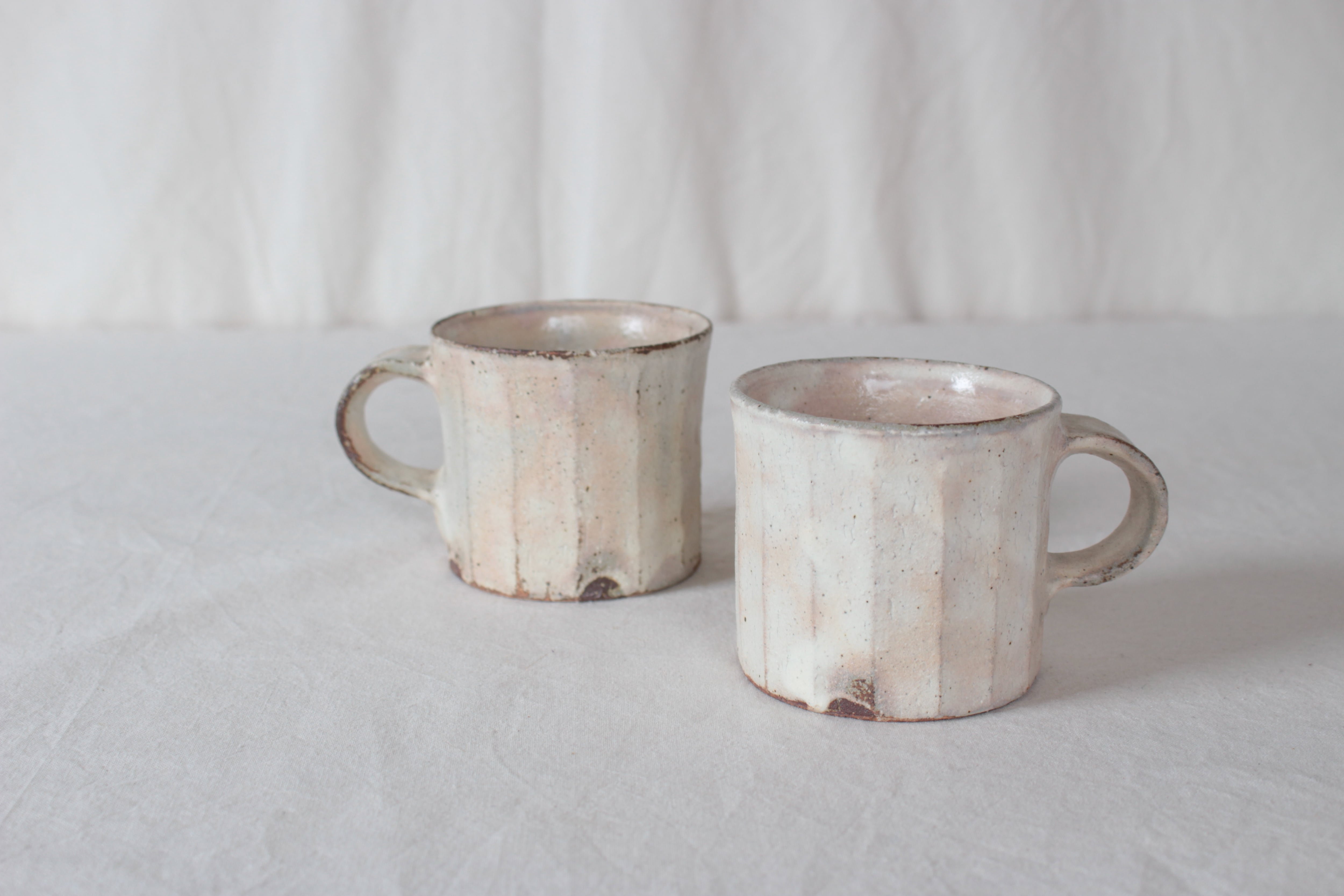 【田山健司】粉引 しのぎ マグカップ 小 A・B
