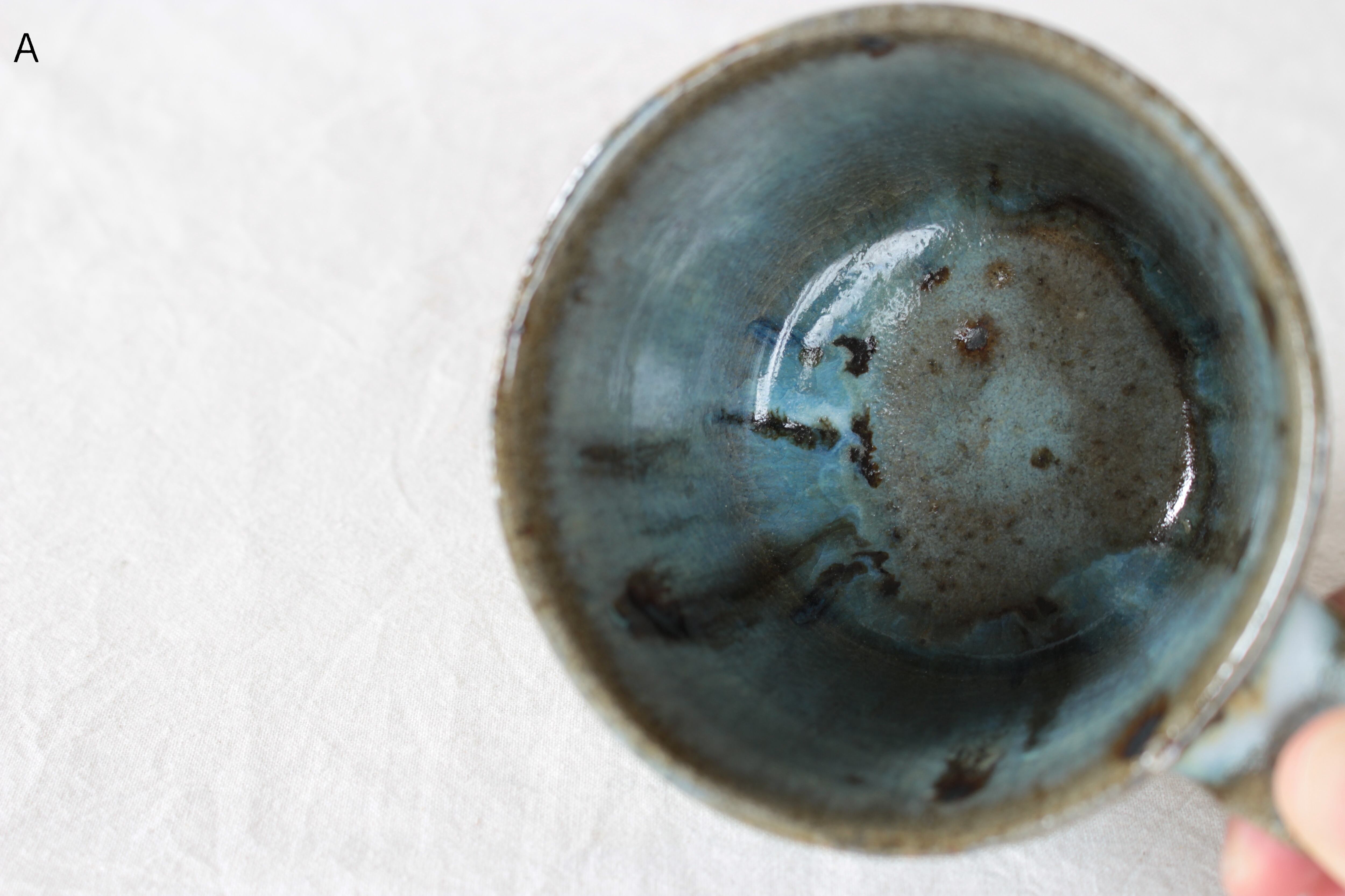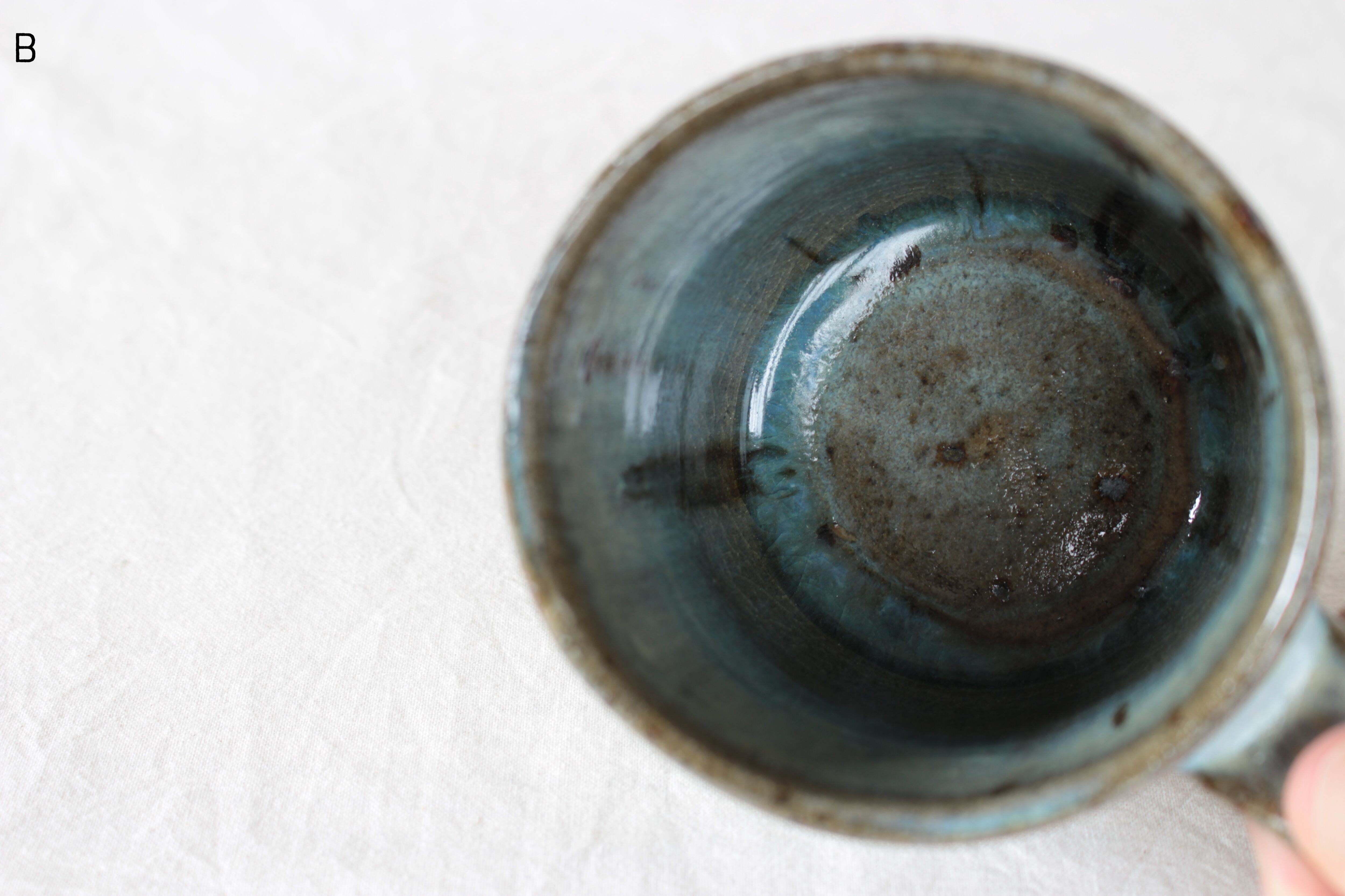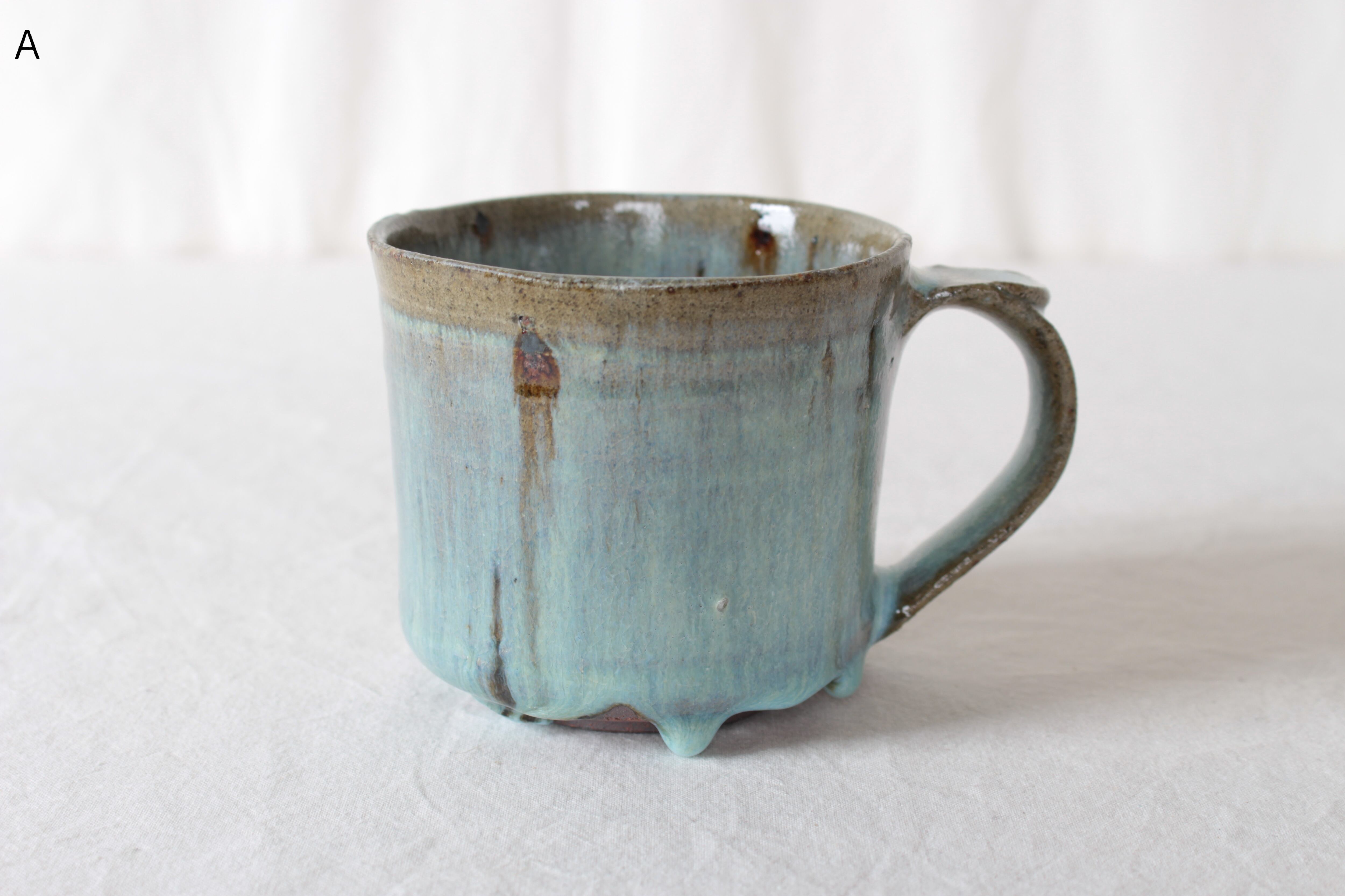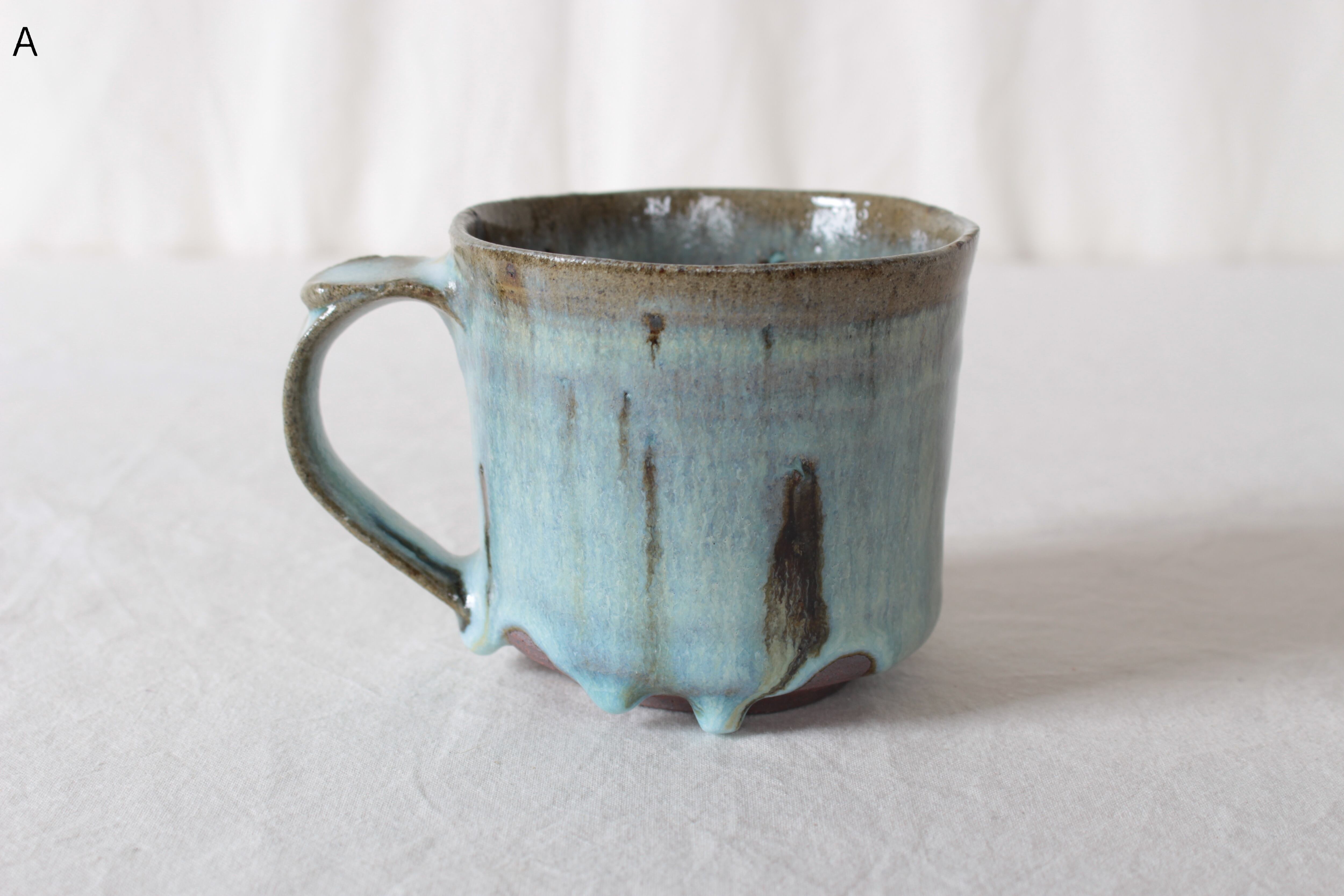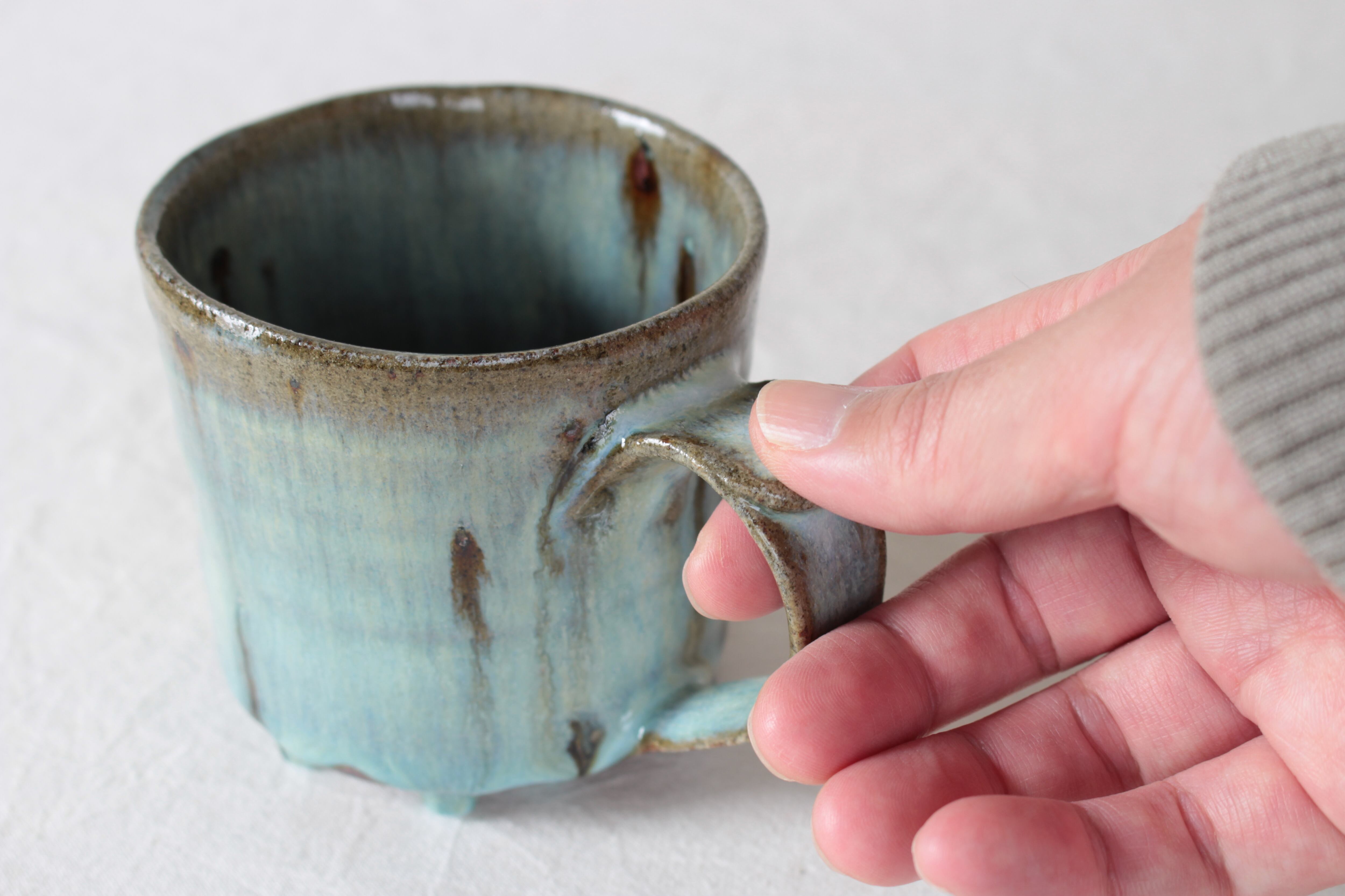 【厚みのある釉の流れ、爽やかな色味に味わいを感じるマグ】
