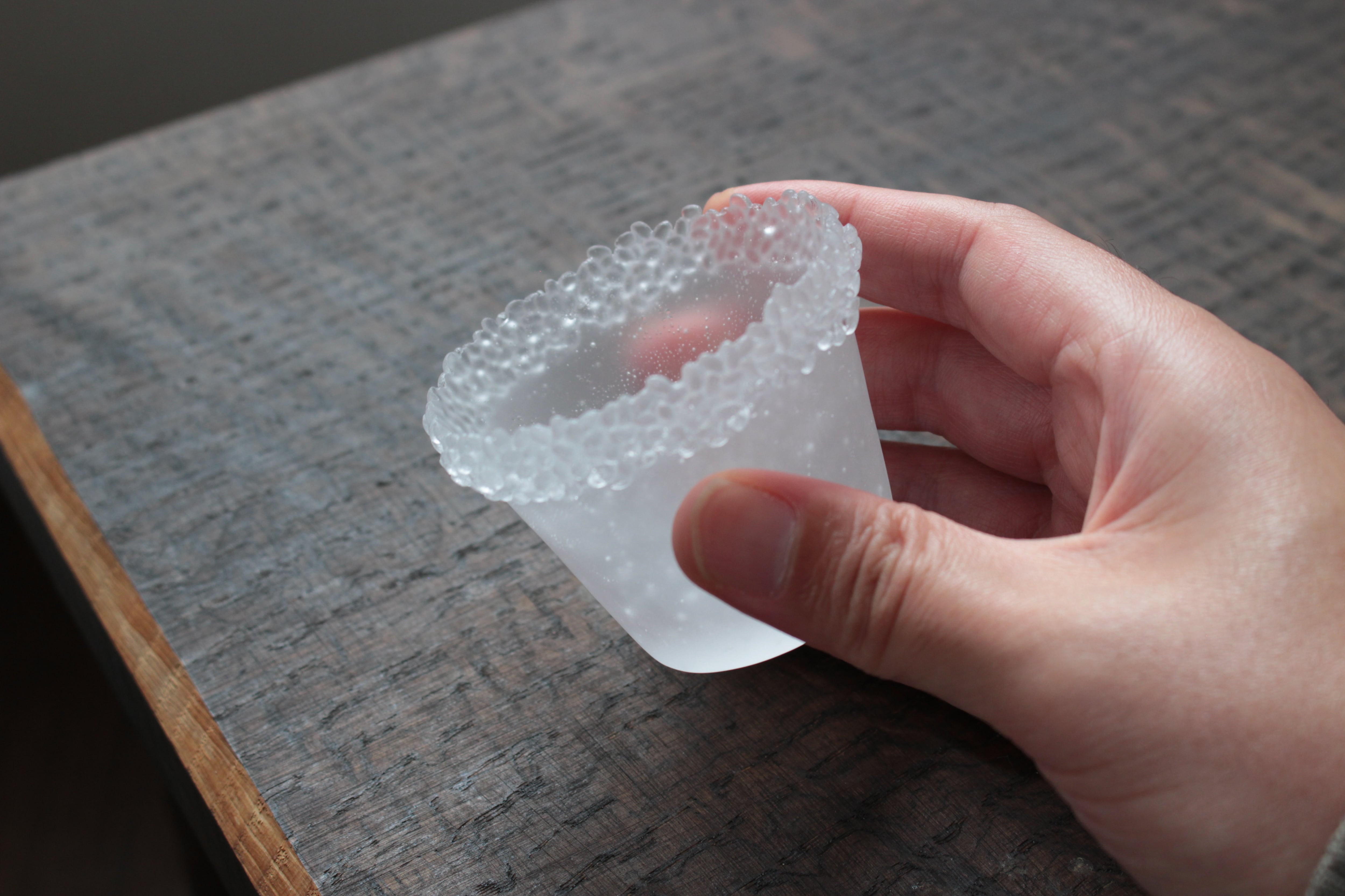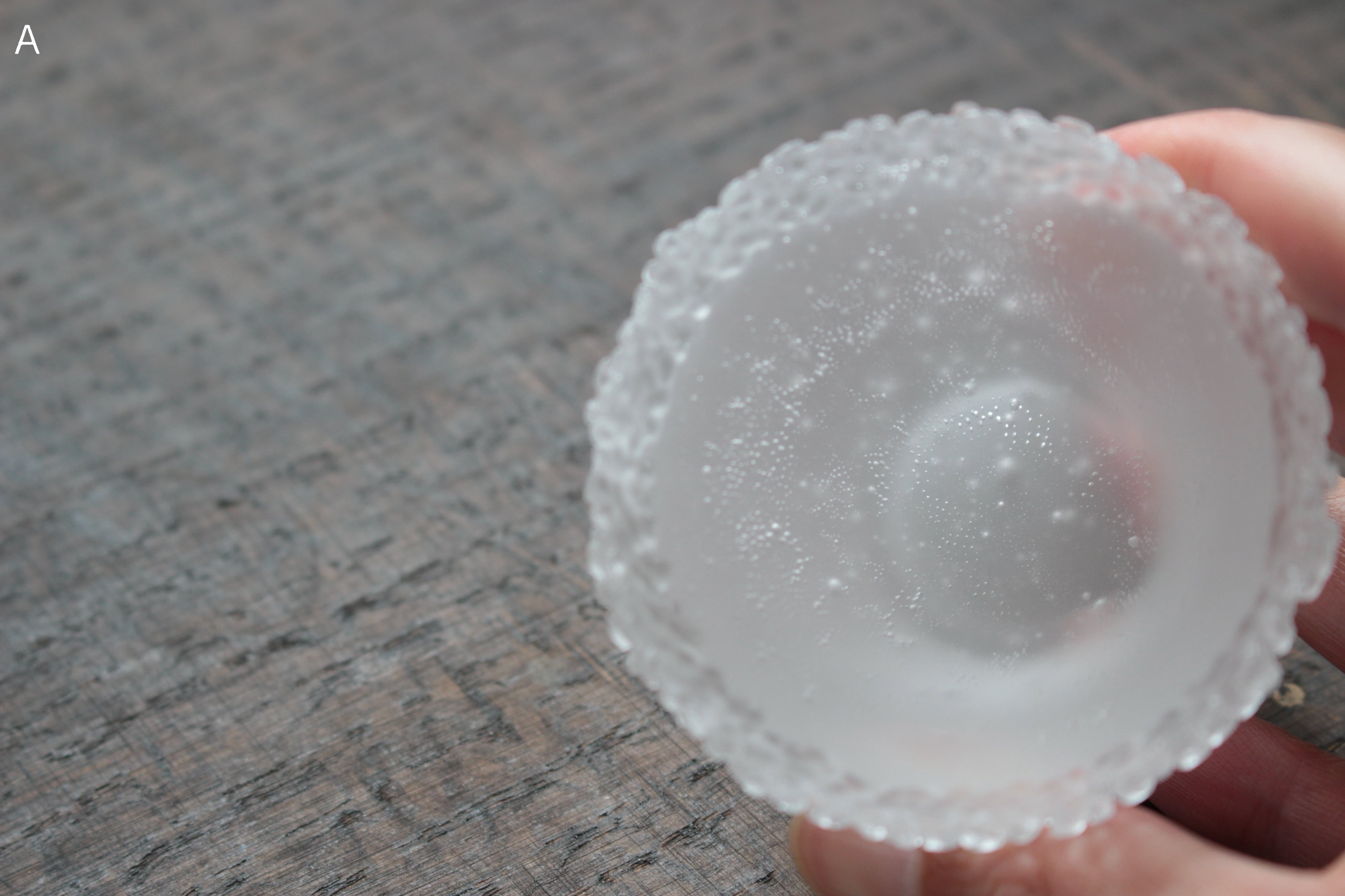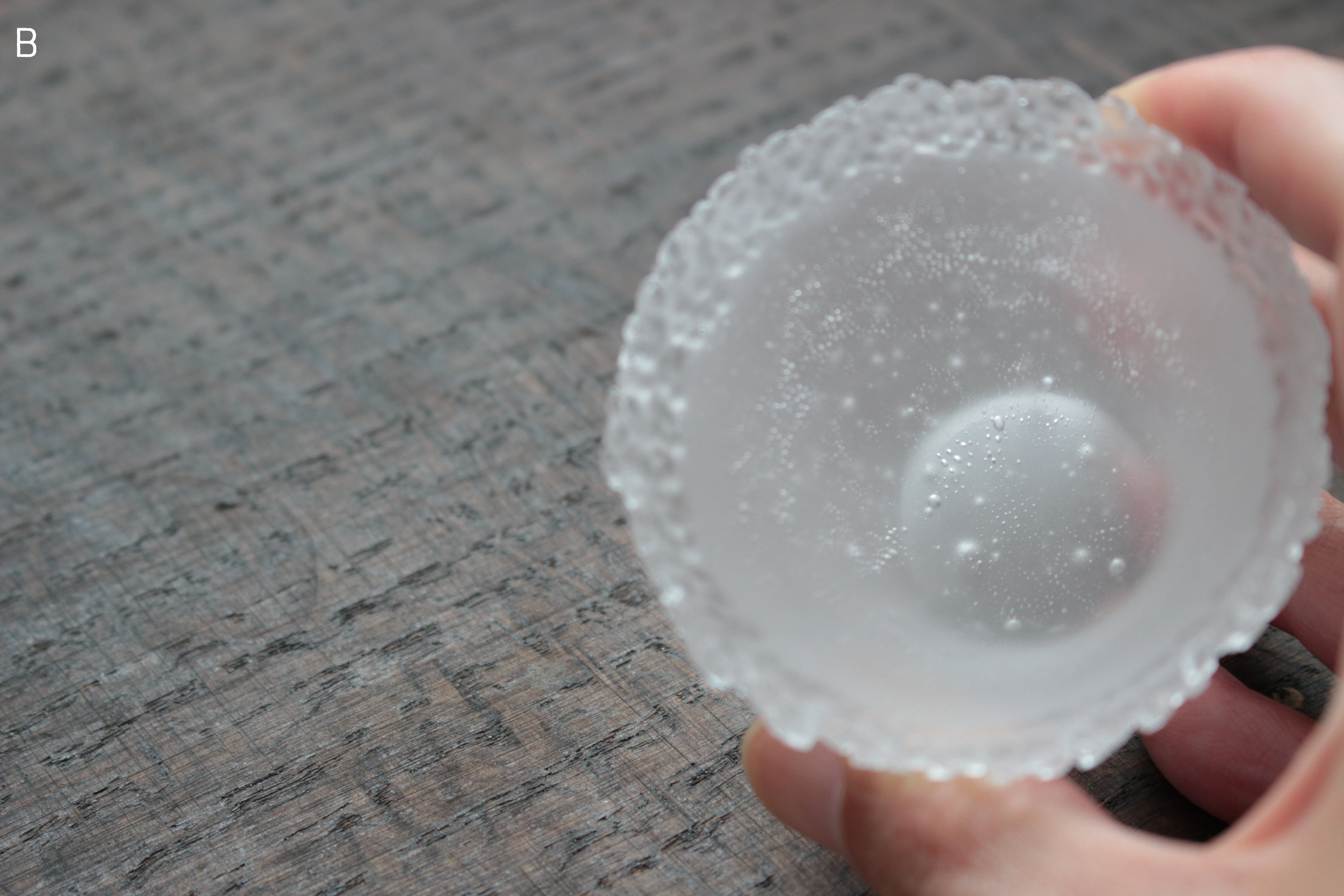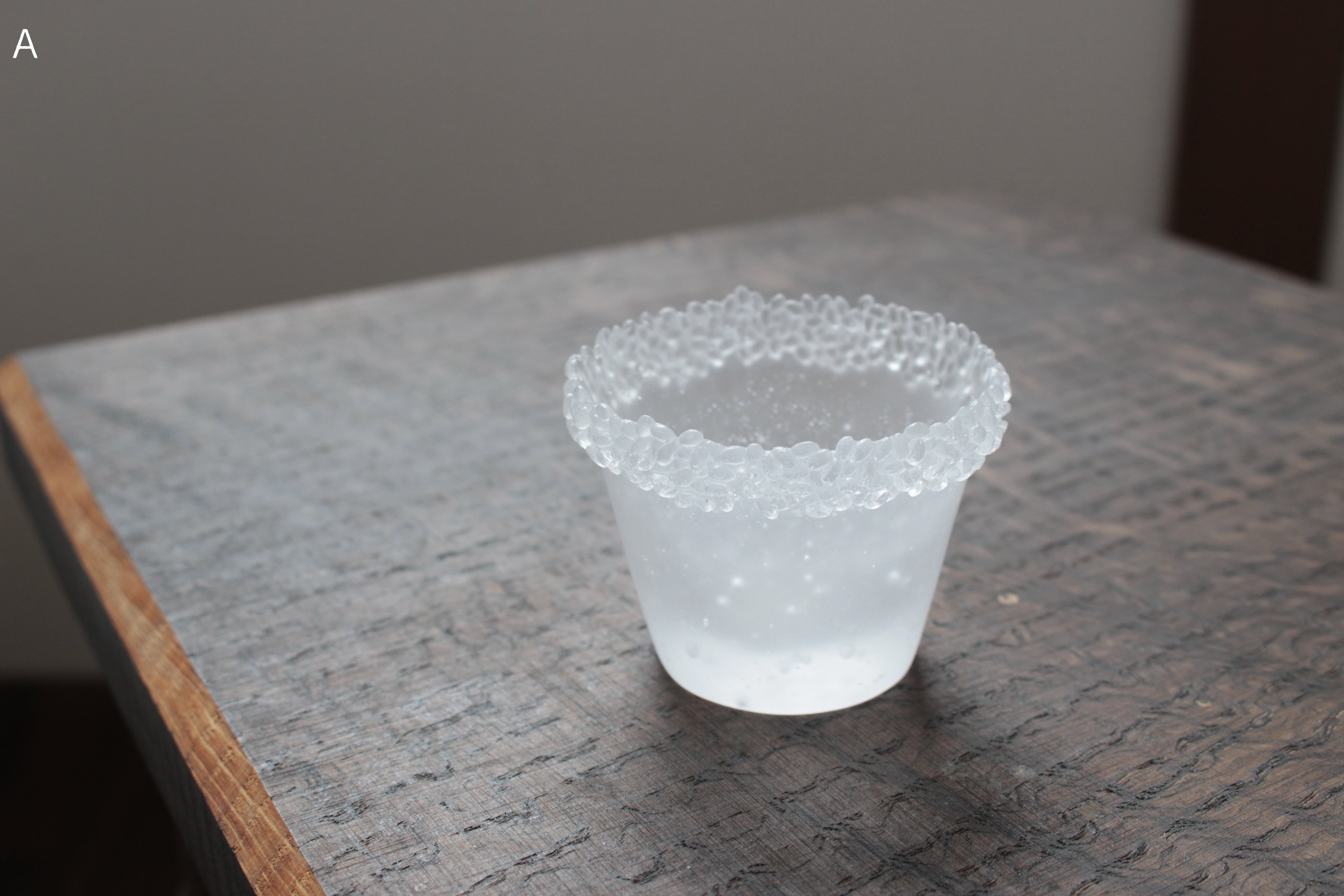 【縁に纏ったお米と、ソーダのような気泡が愛らしいお猪口】