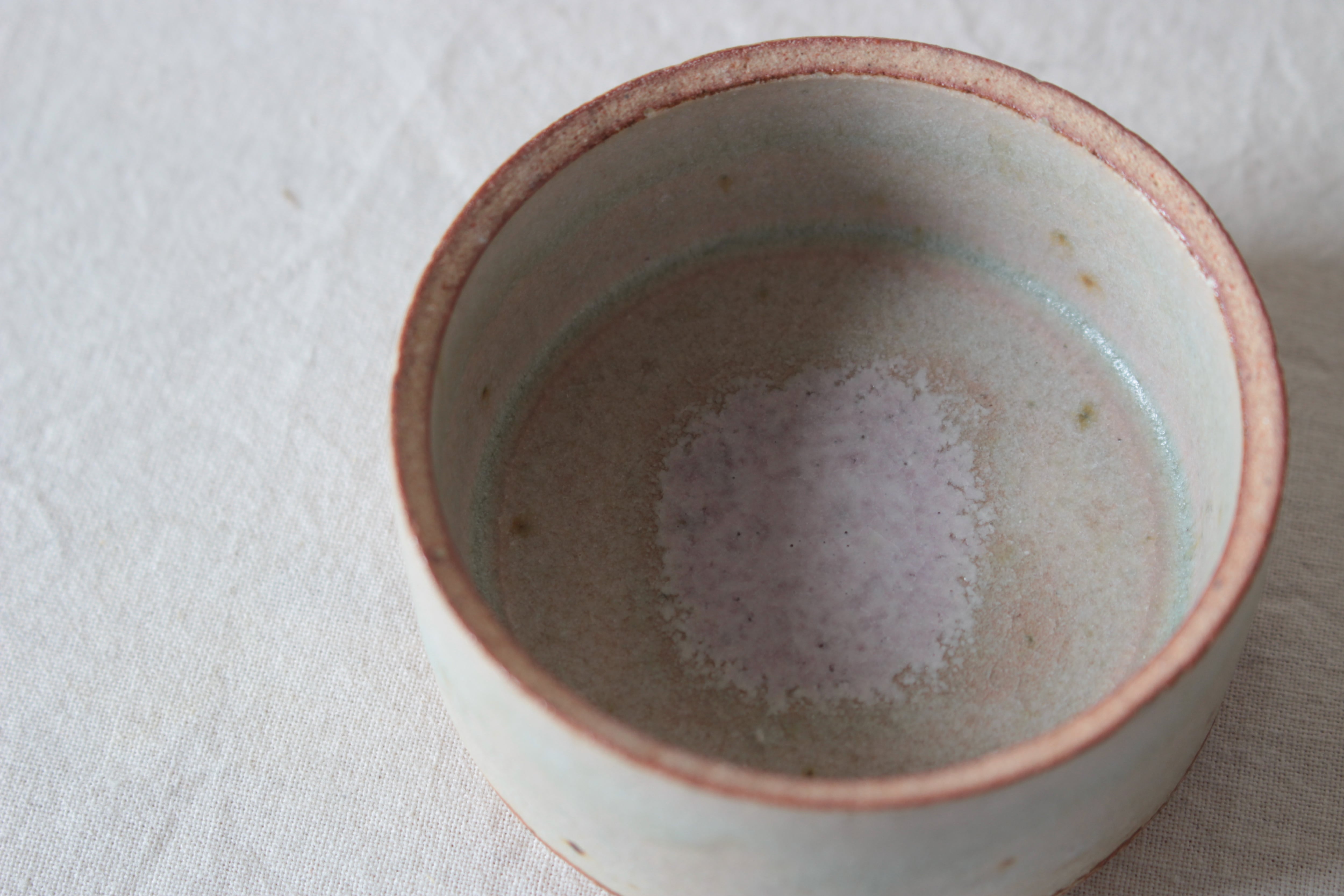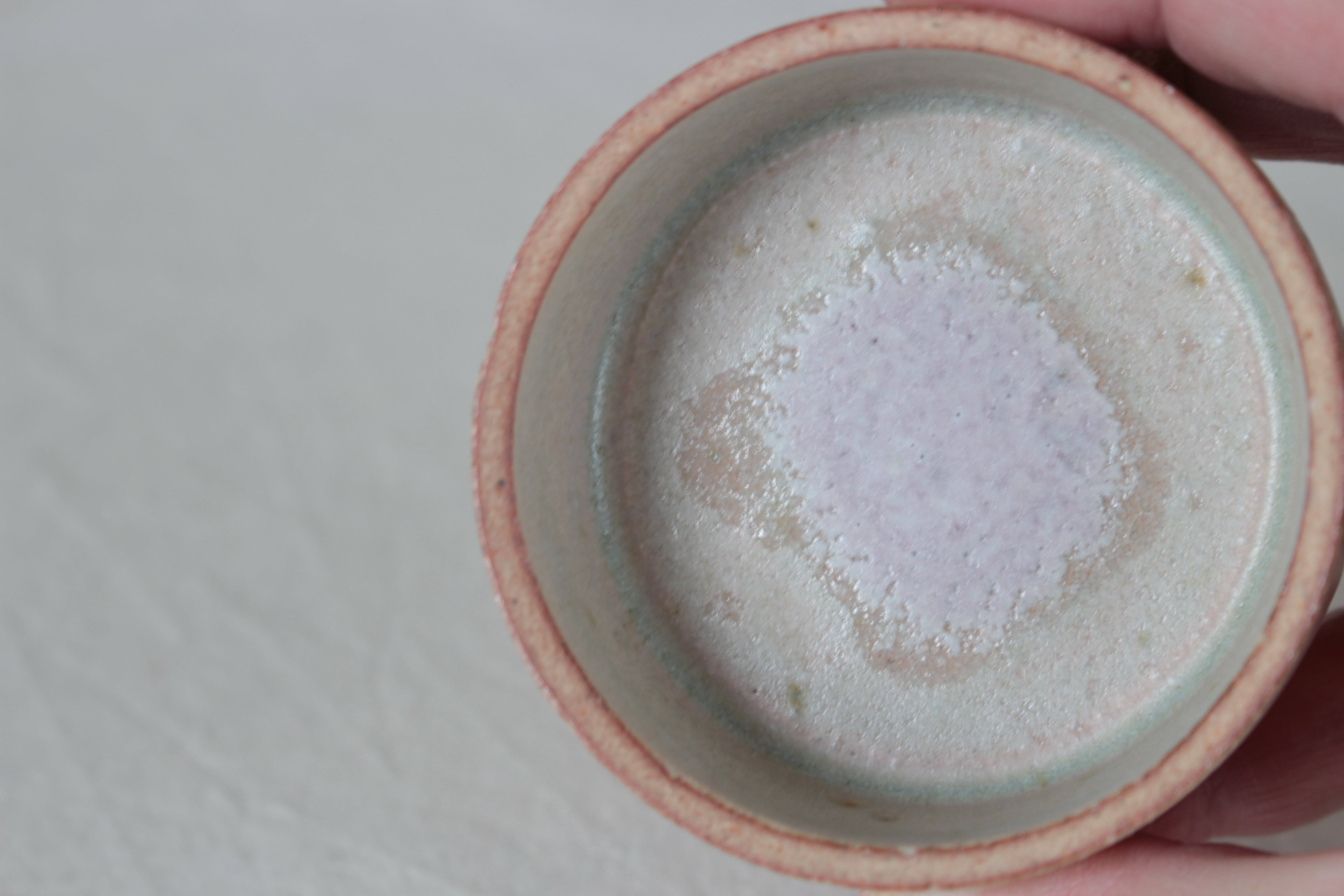 中央にじわっと広がる桃色は桜桃灰釉。