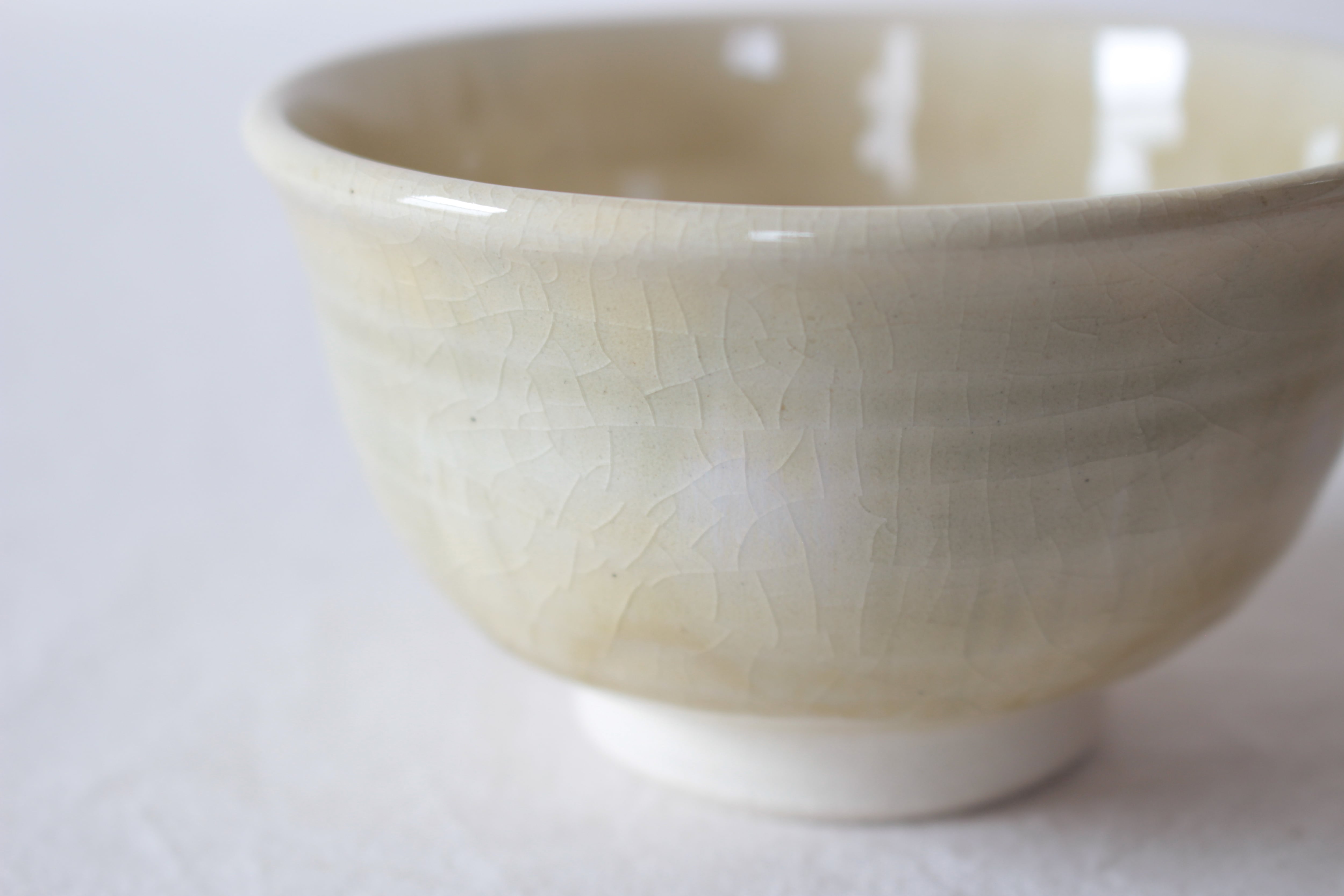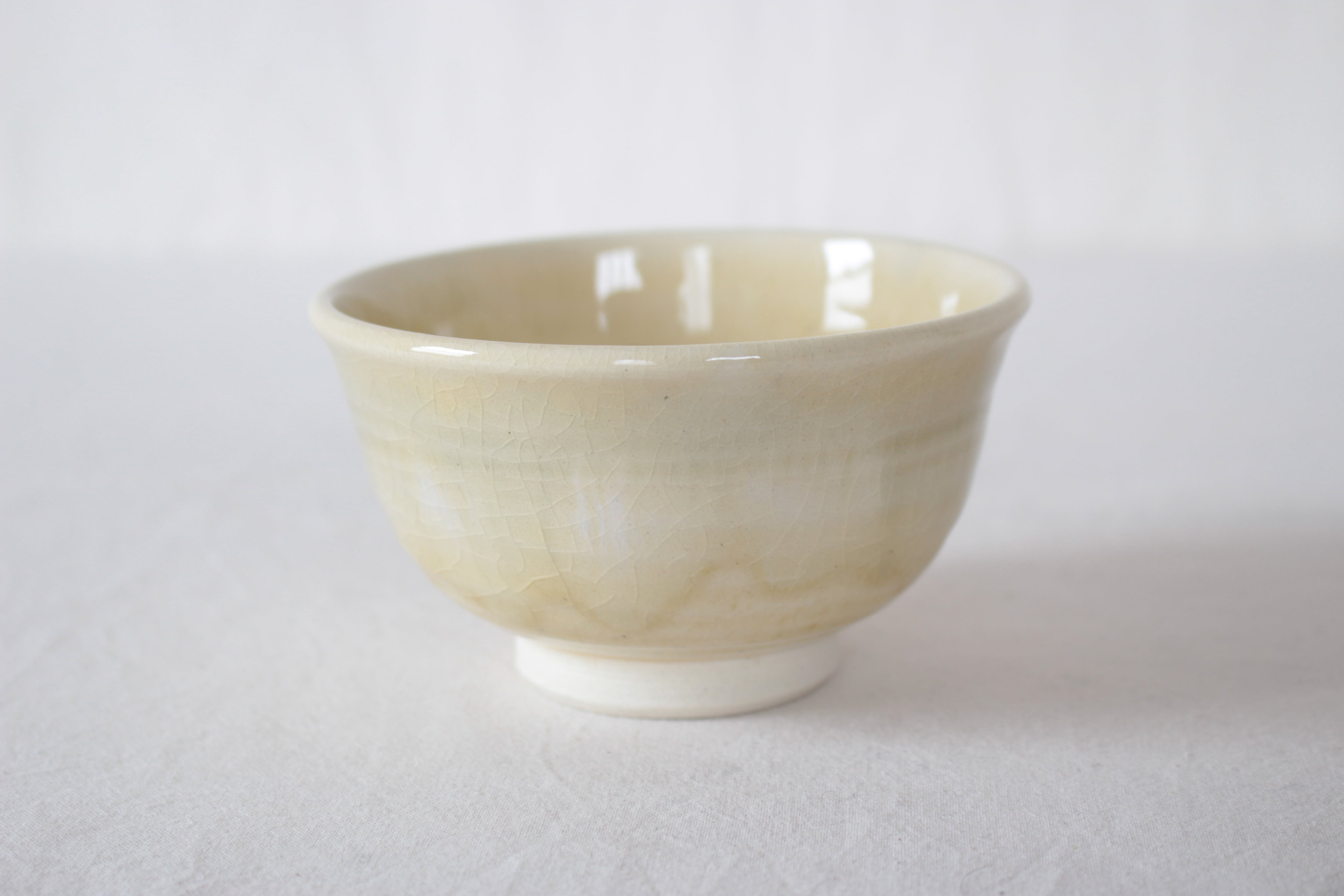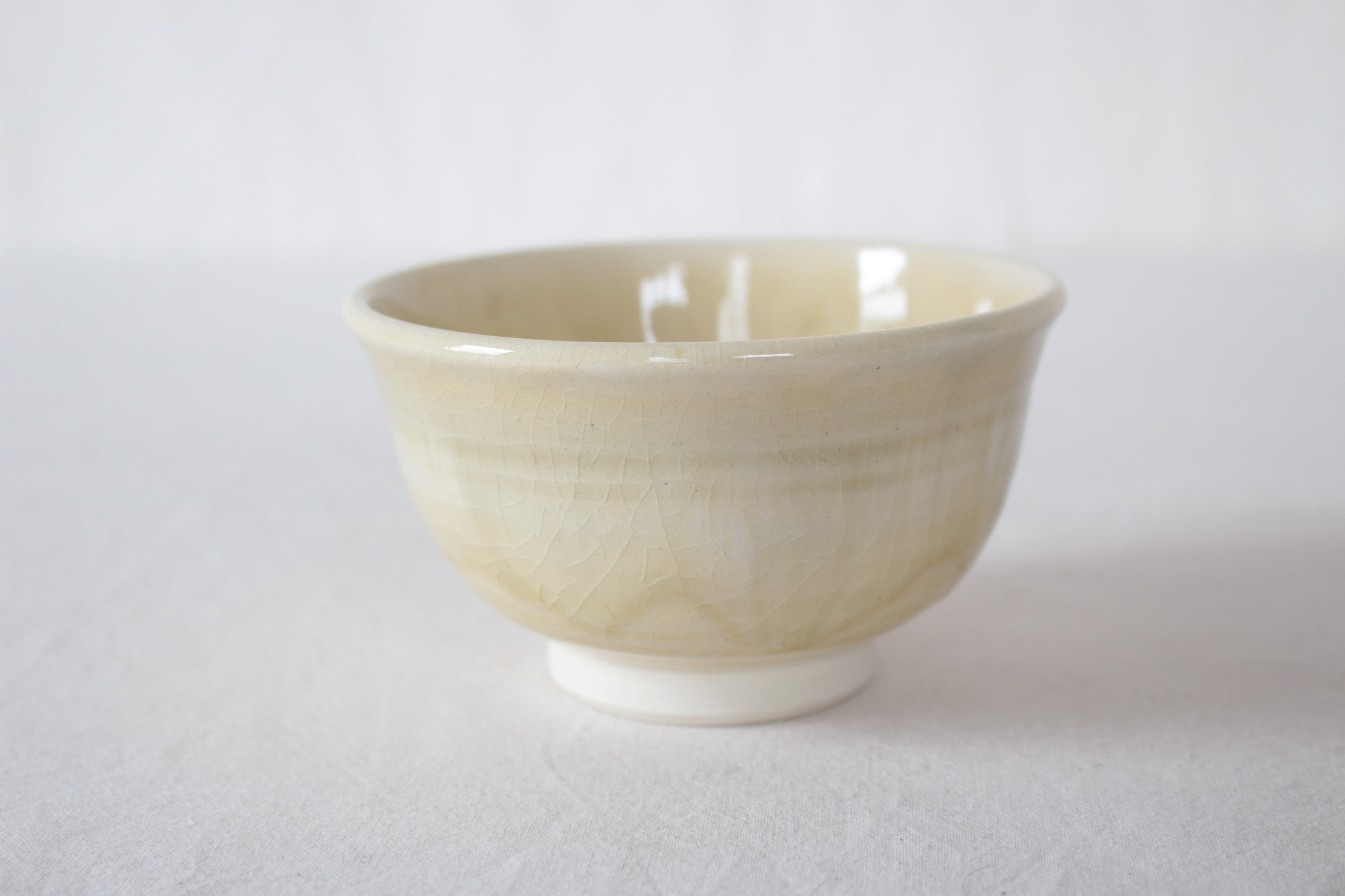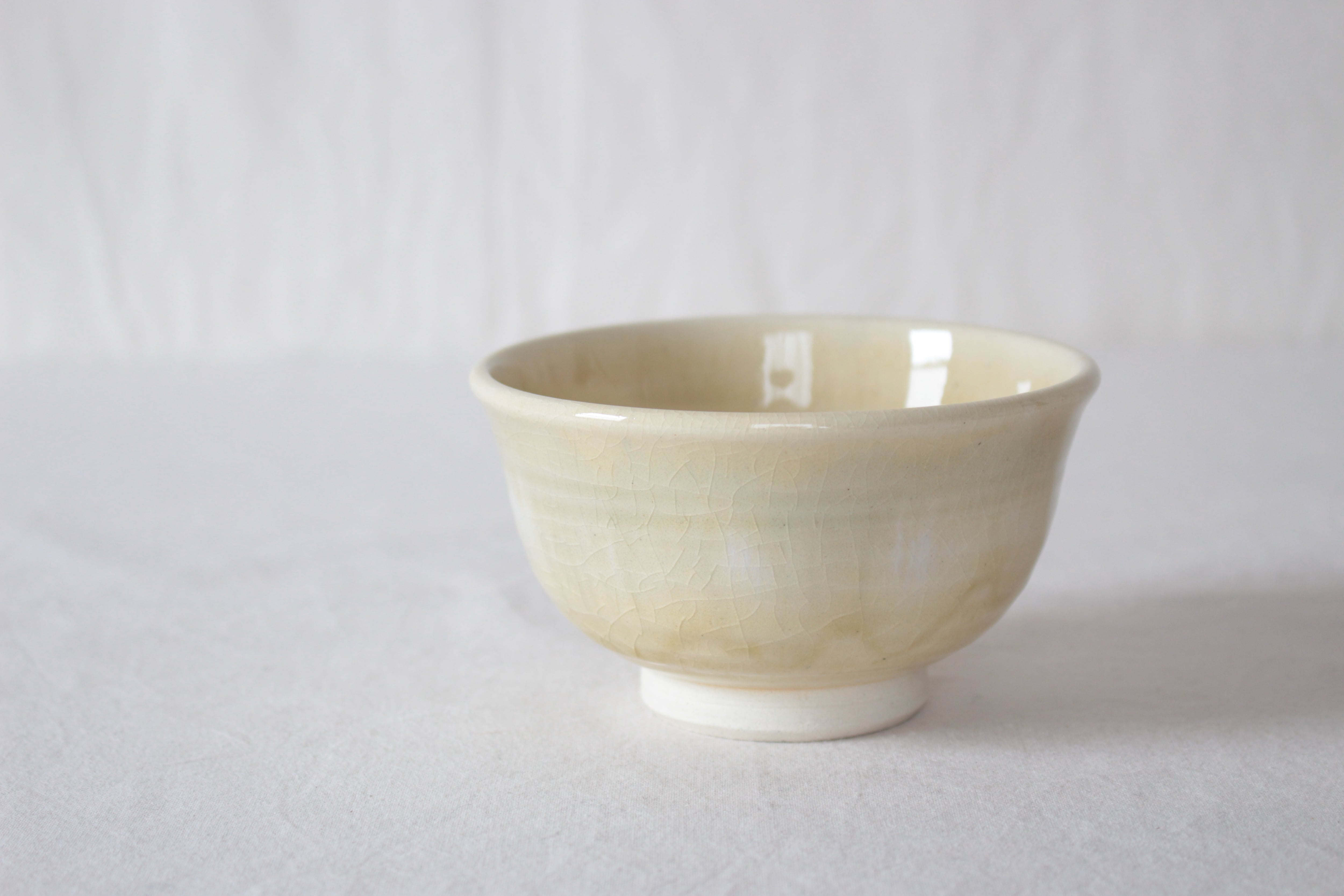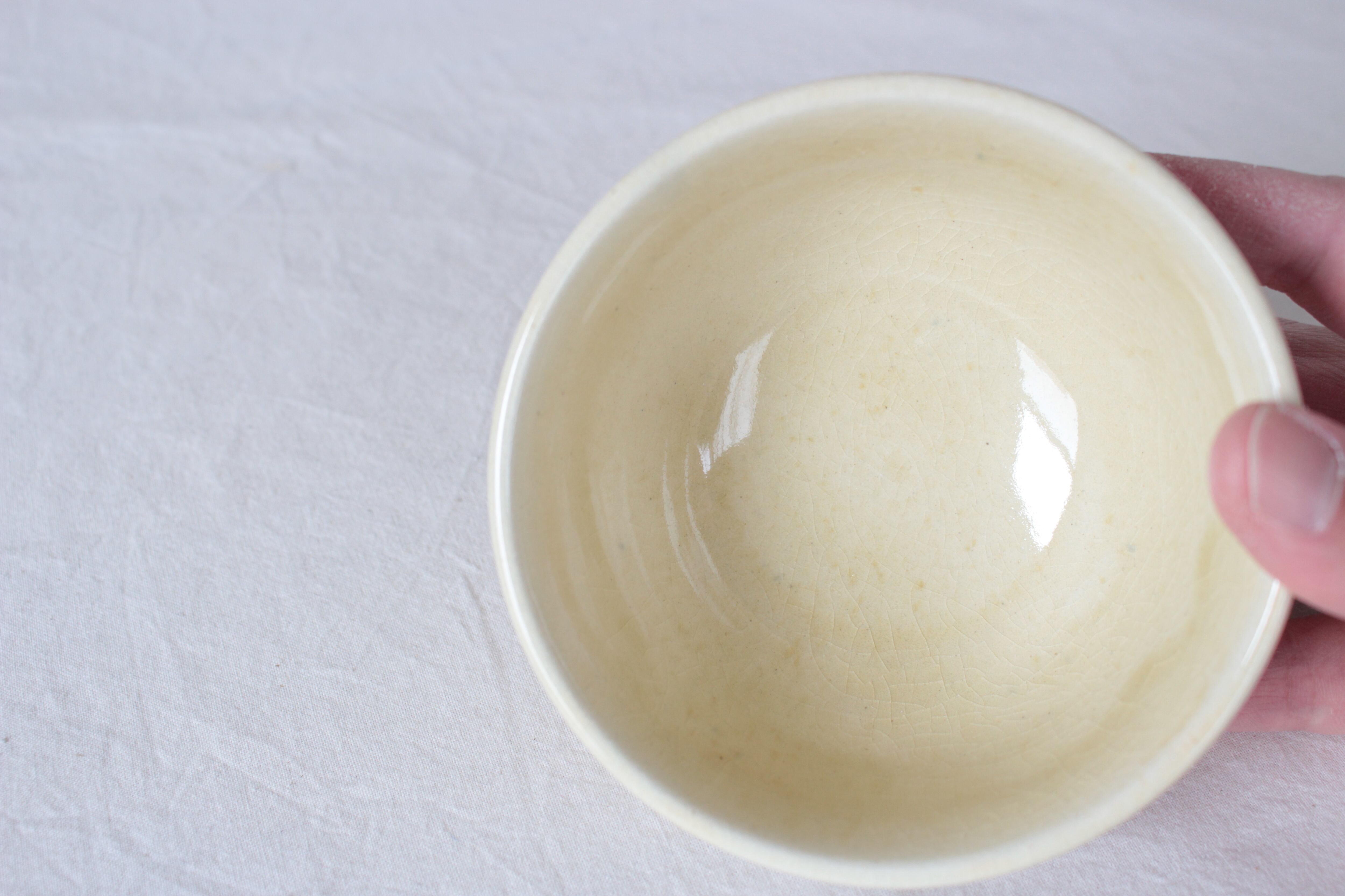 【白い土肌にほんのりと青浮かぶ、優しい印象の碗】