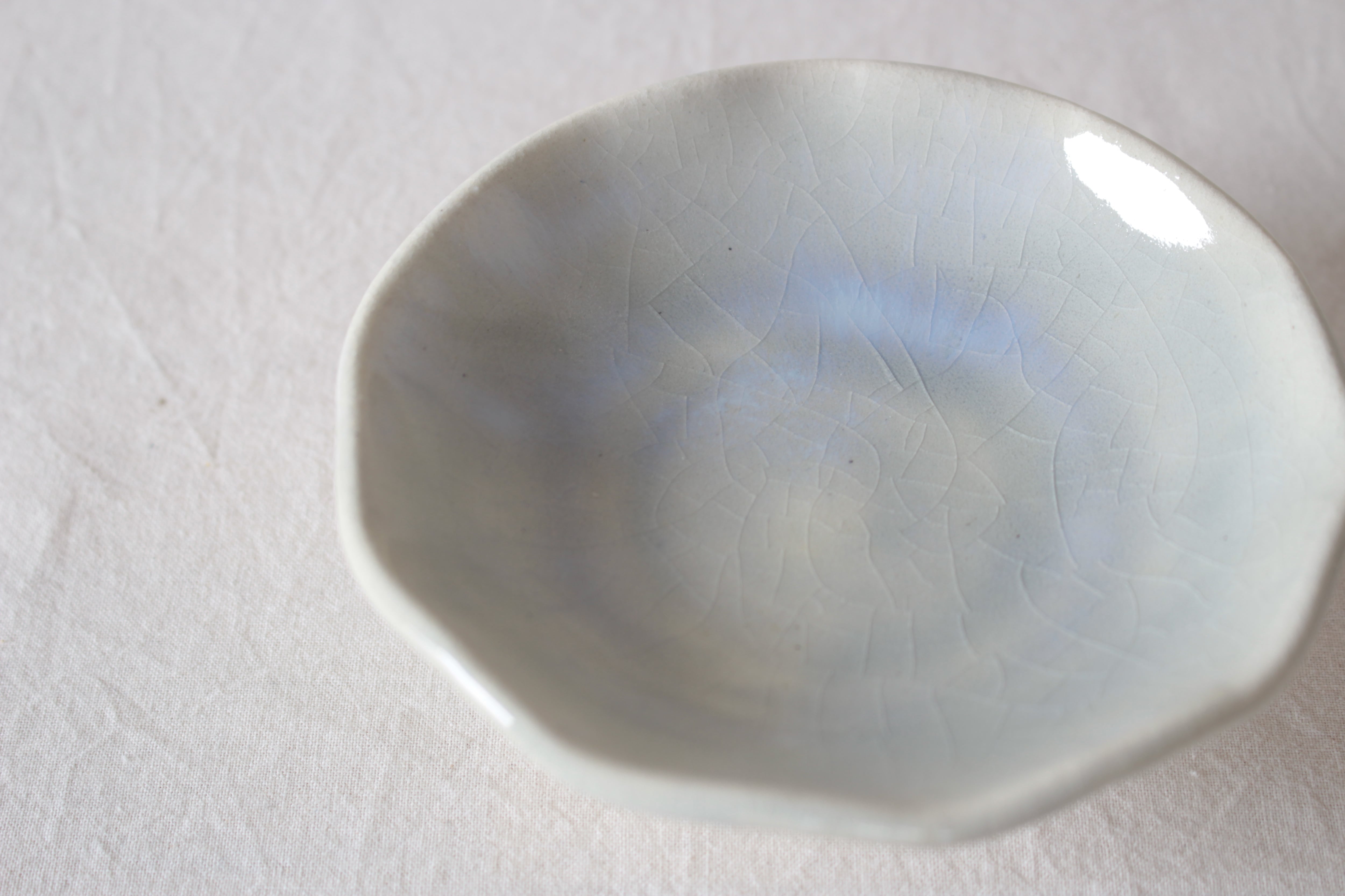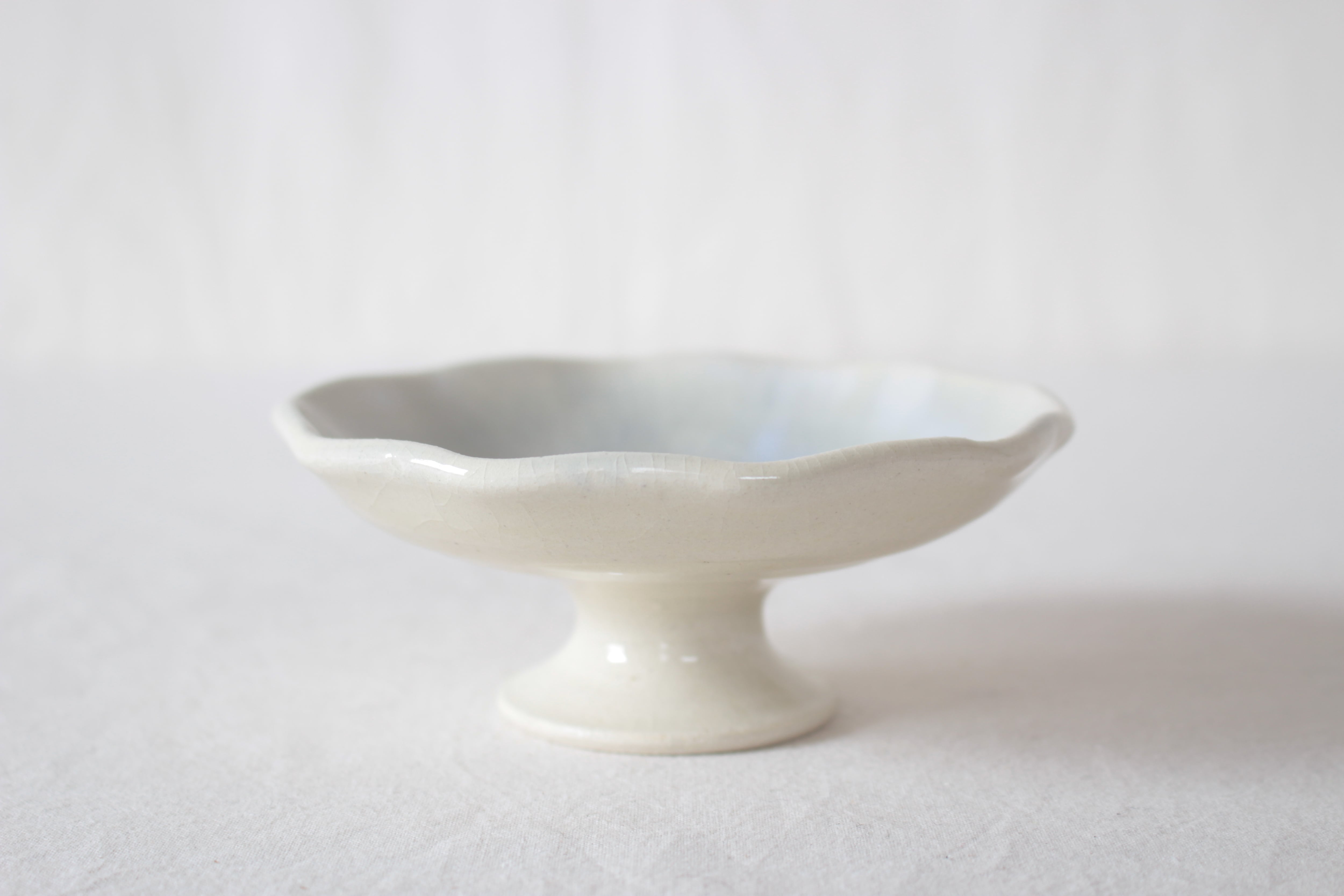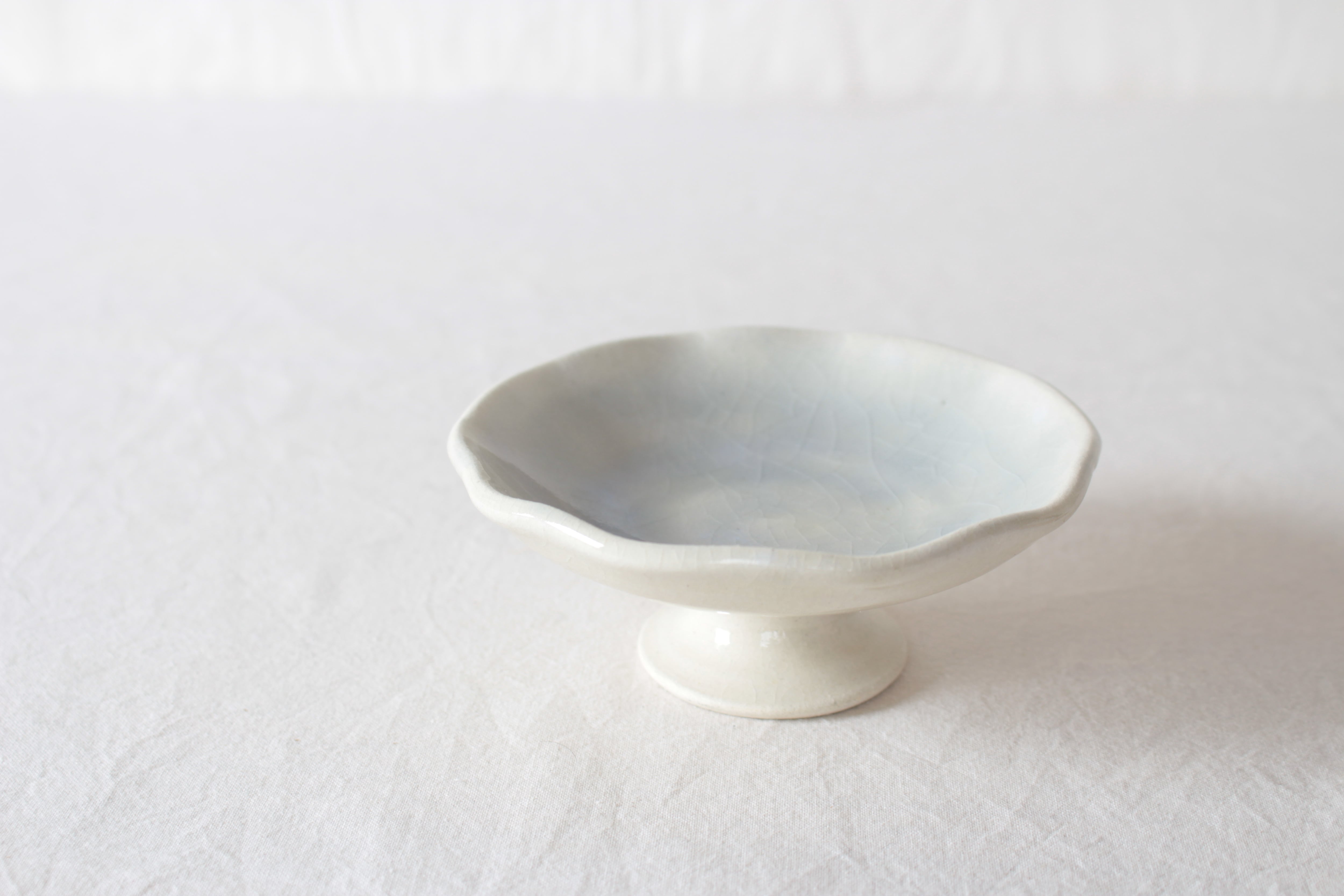 【ゆらめく輪郭の上を遊ぶような水色が愛らしい脚付き皿】