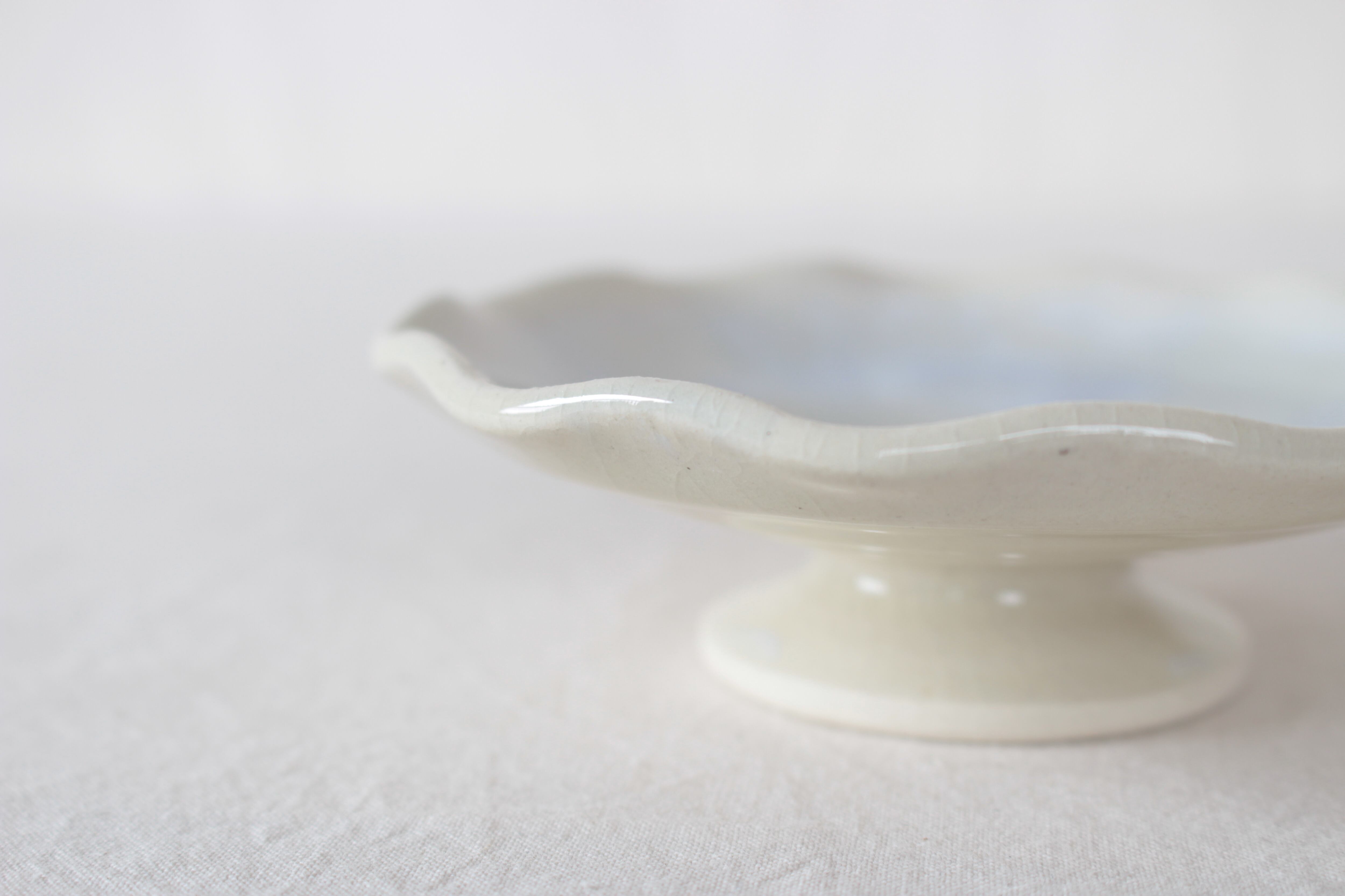 【ゆらめく輪郭の上を遊ぶような水色が愛らしい脚付き皿】