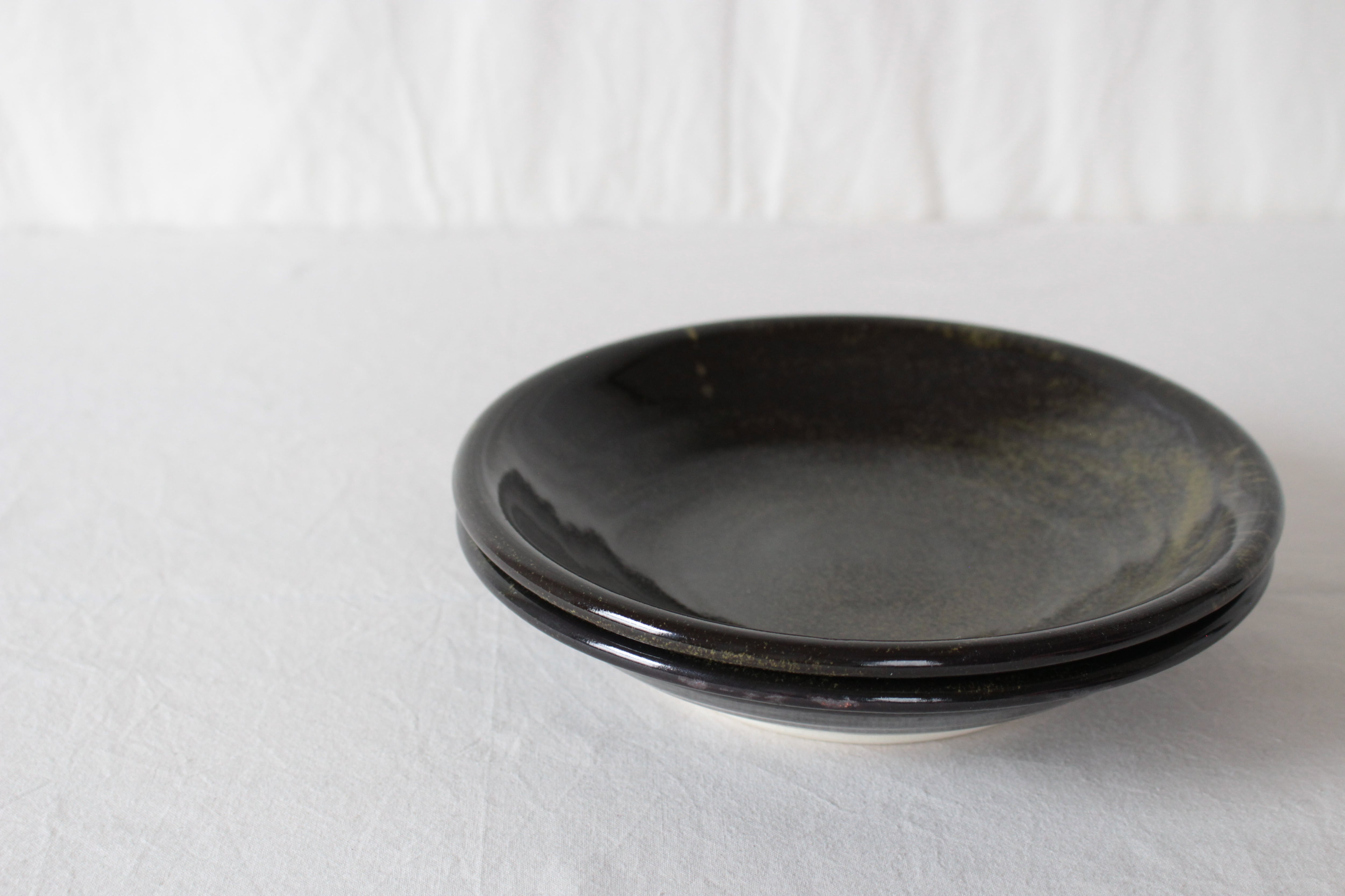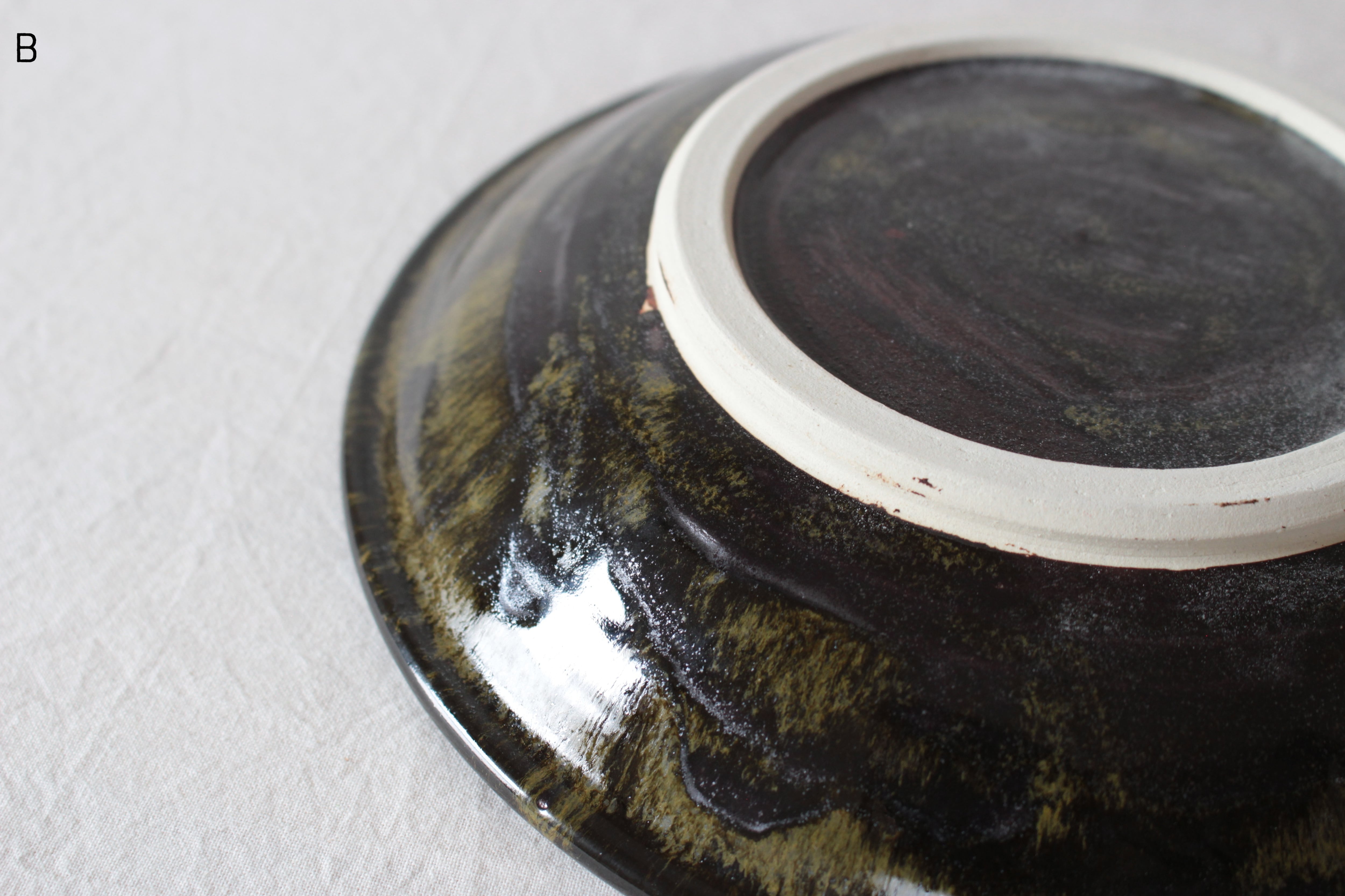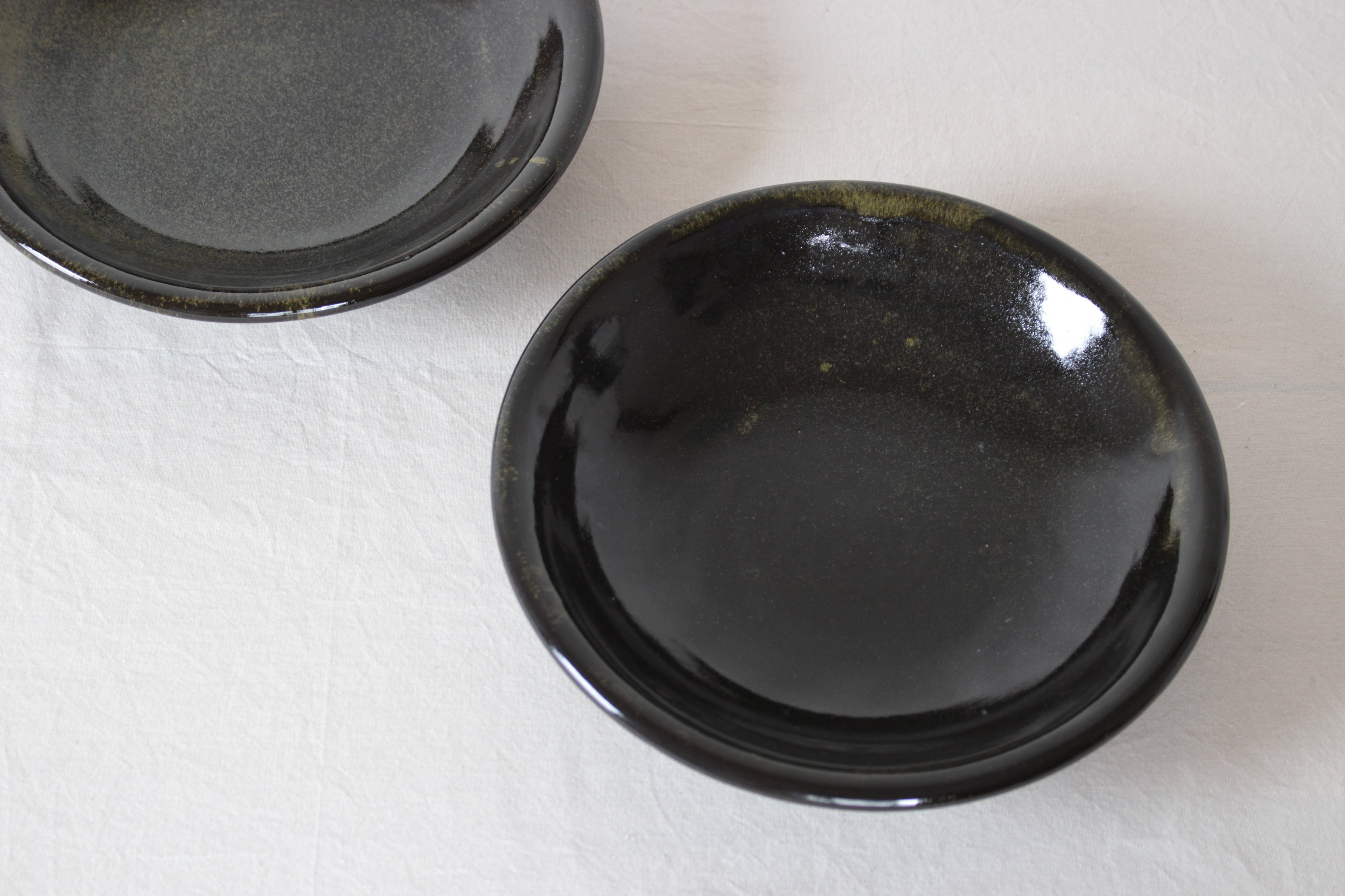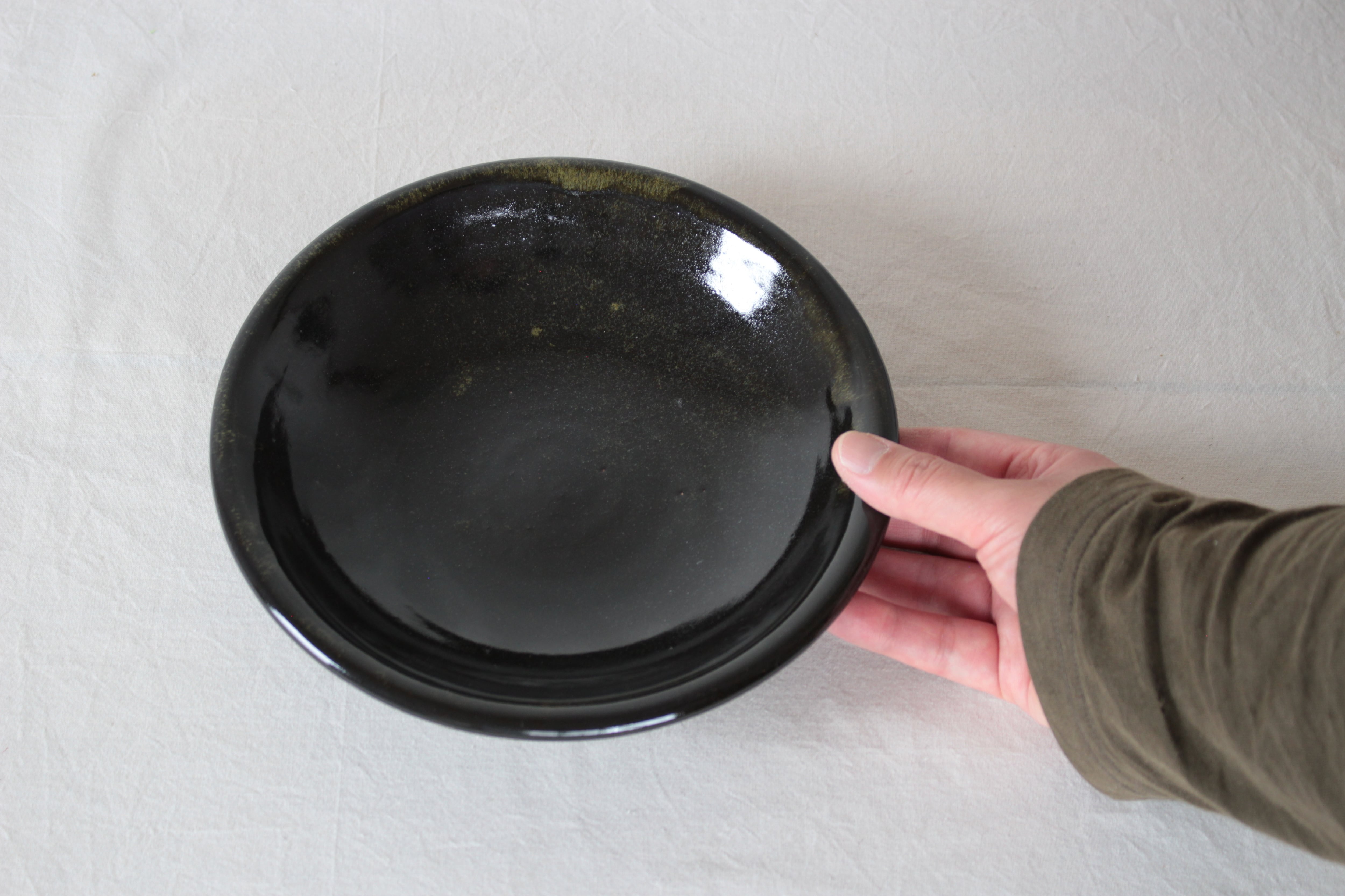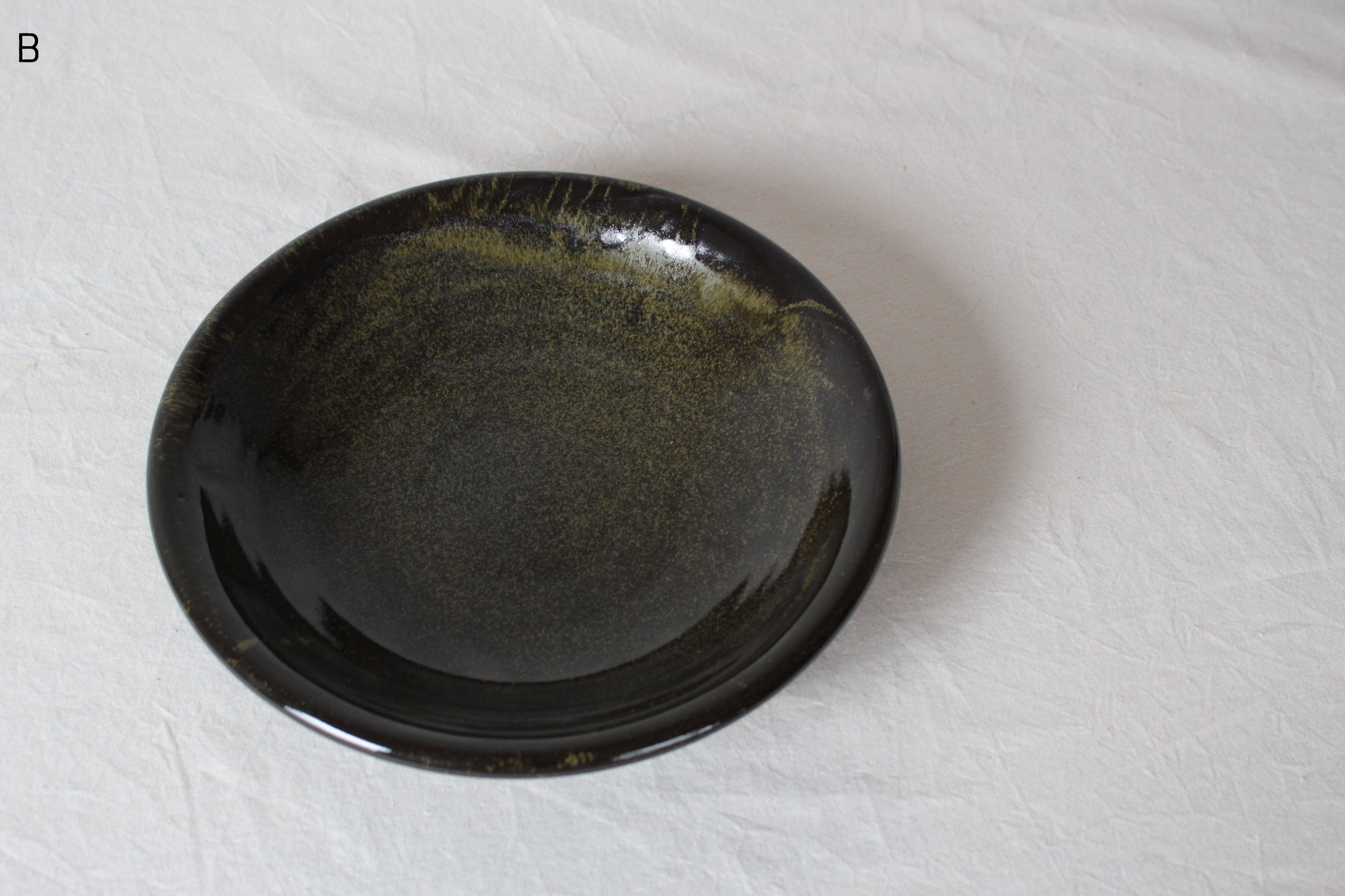 【存在感のある黒に鉄分の黄金色が舞う7寸皿】