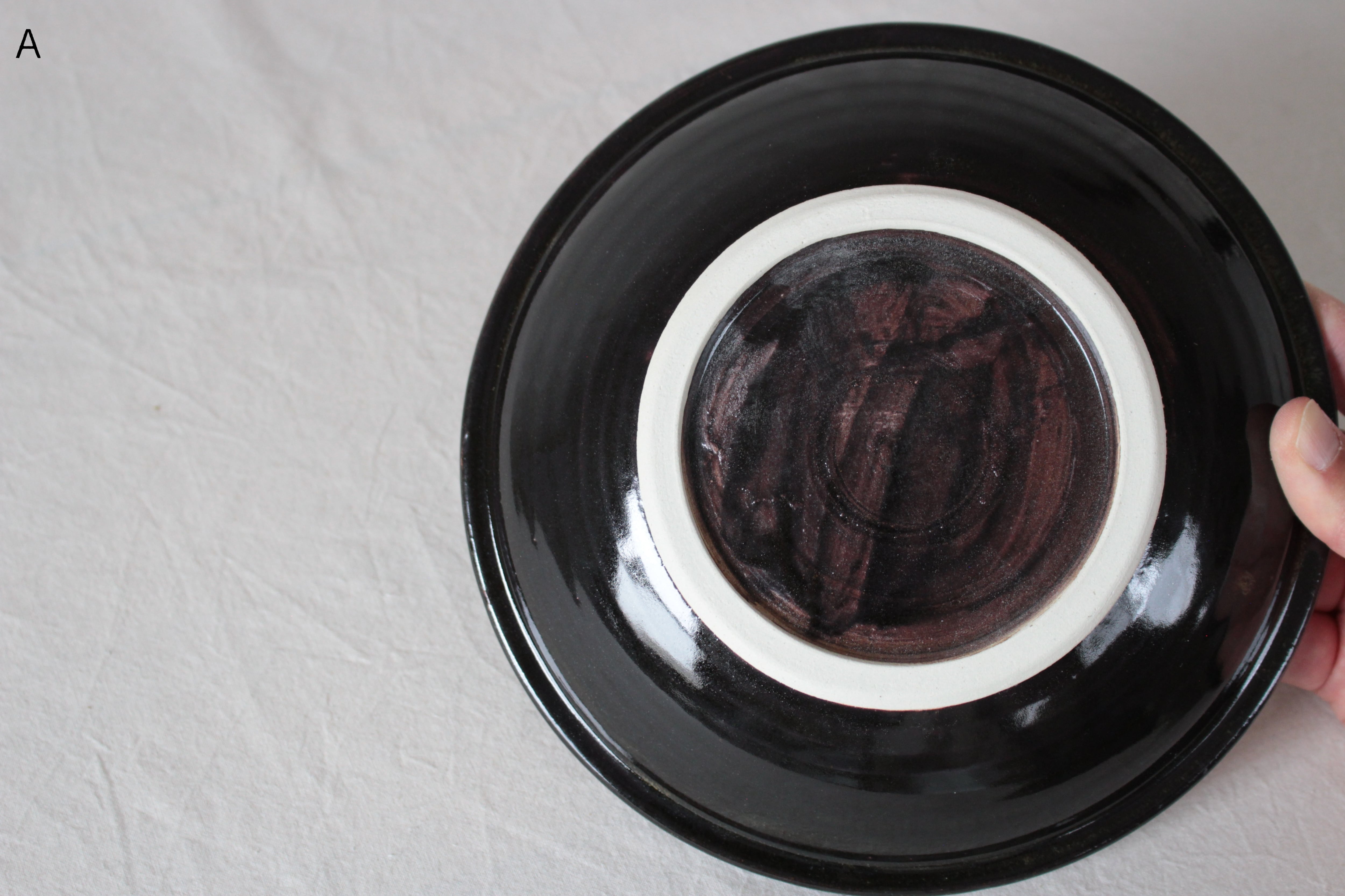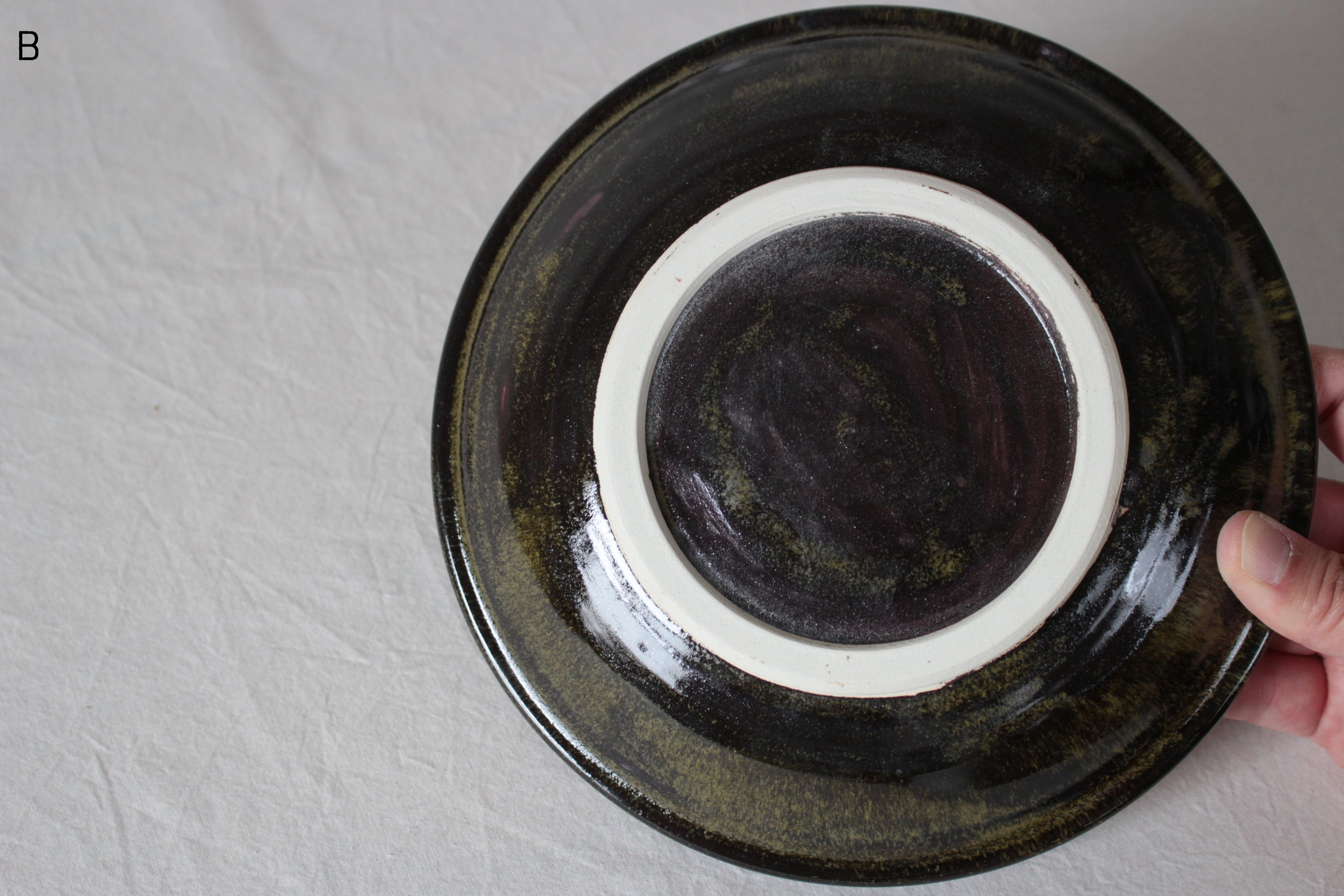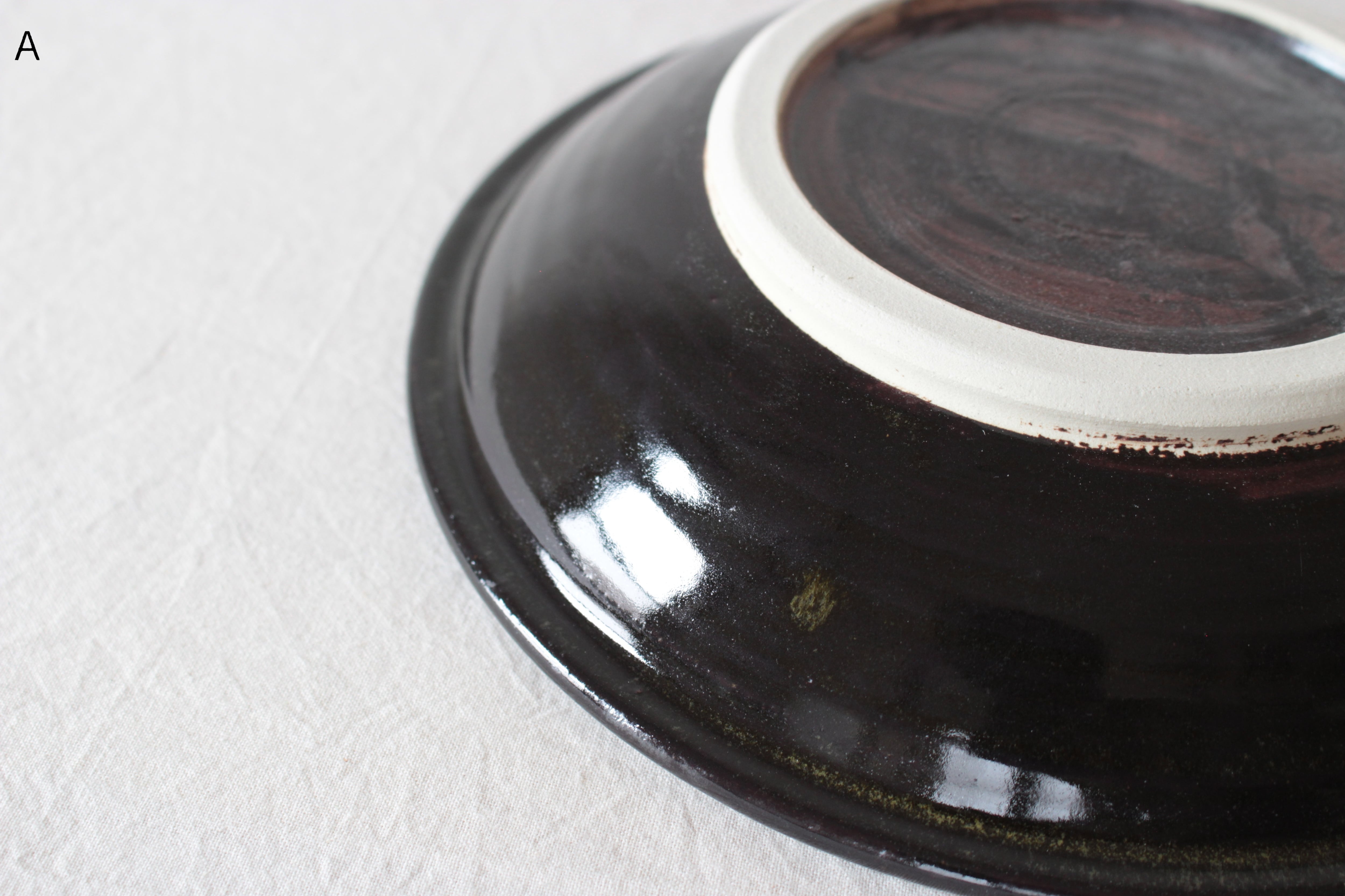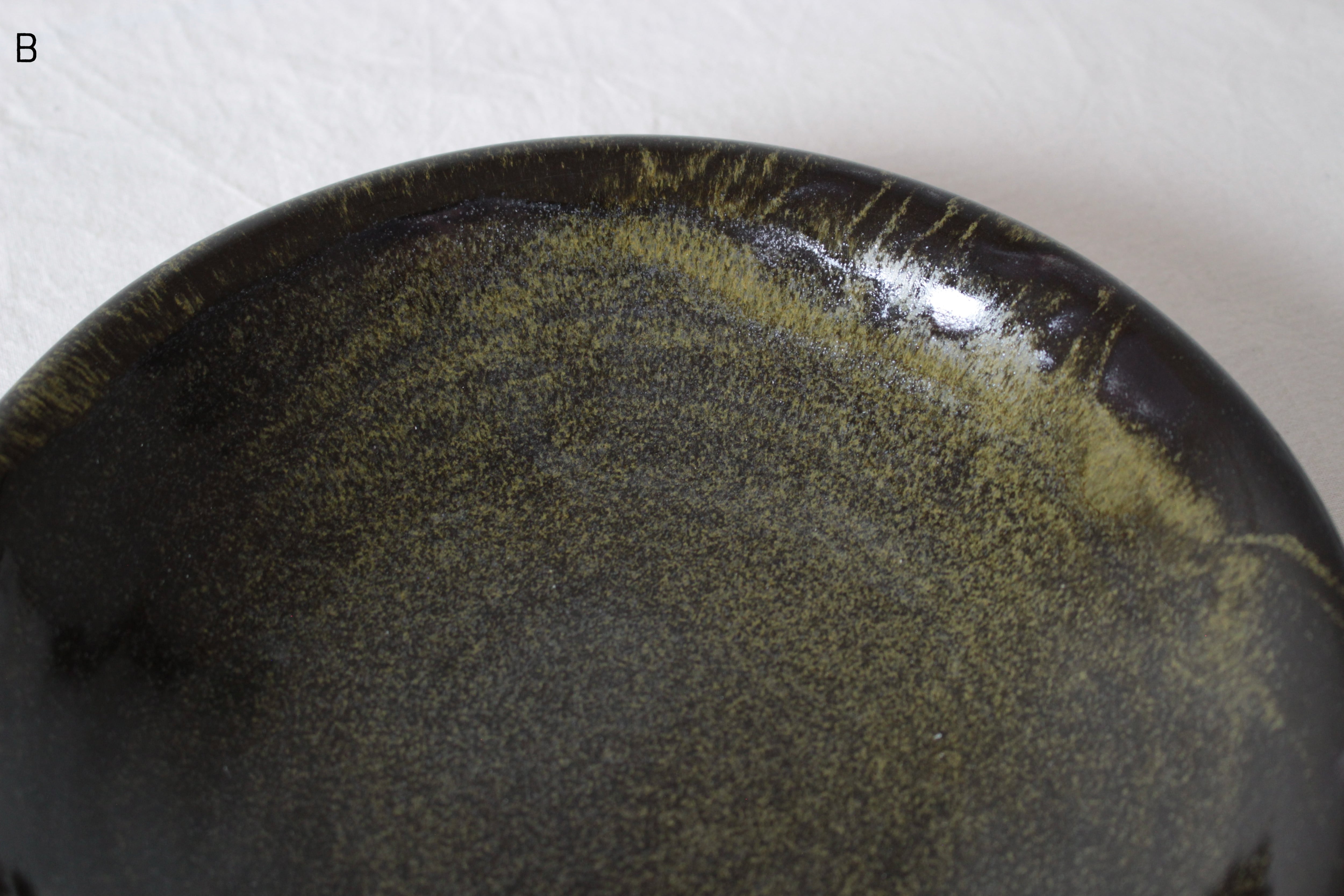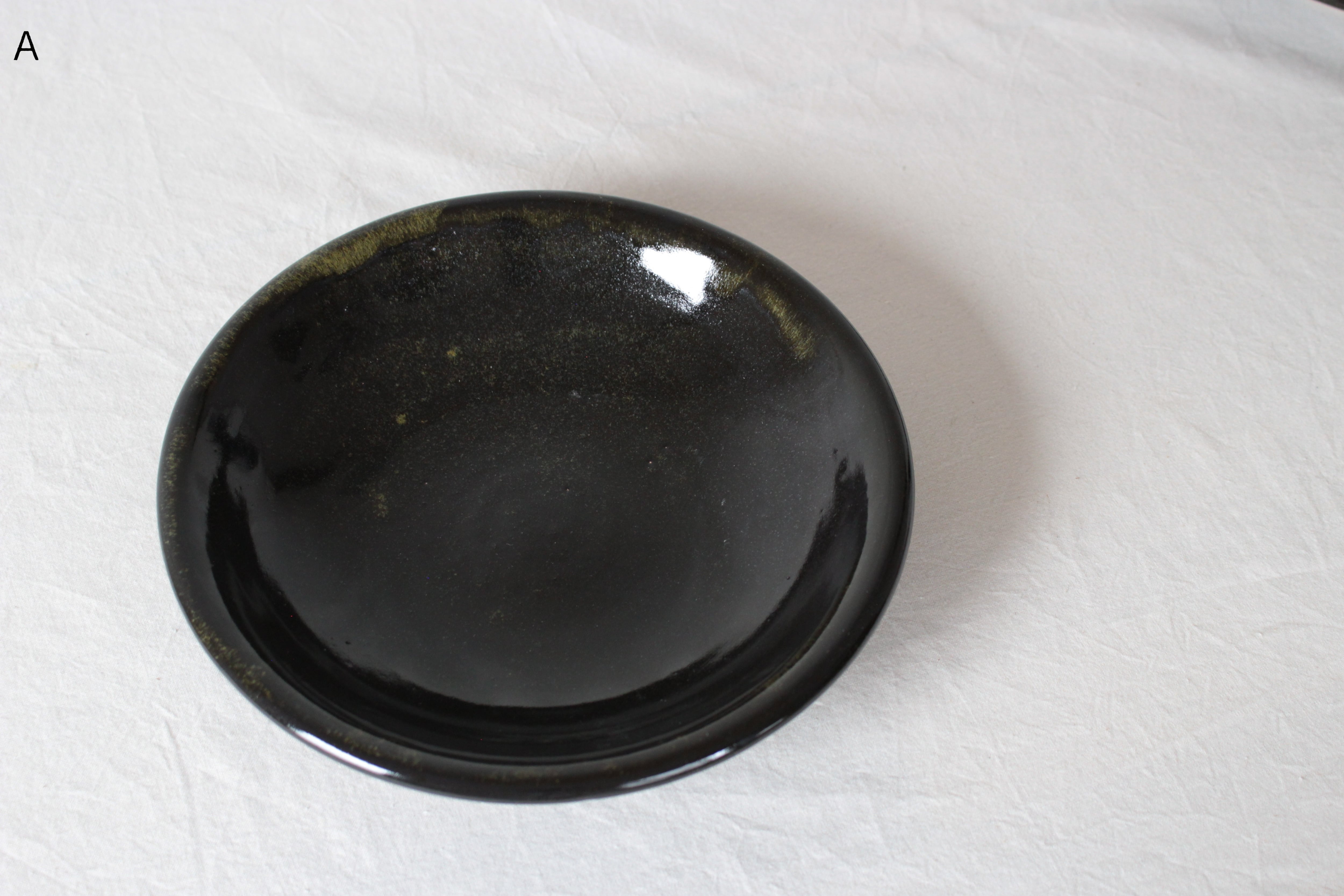 【存在感のある黒に鉄分の黄金色が舞う7寸皿】