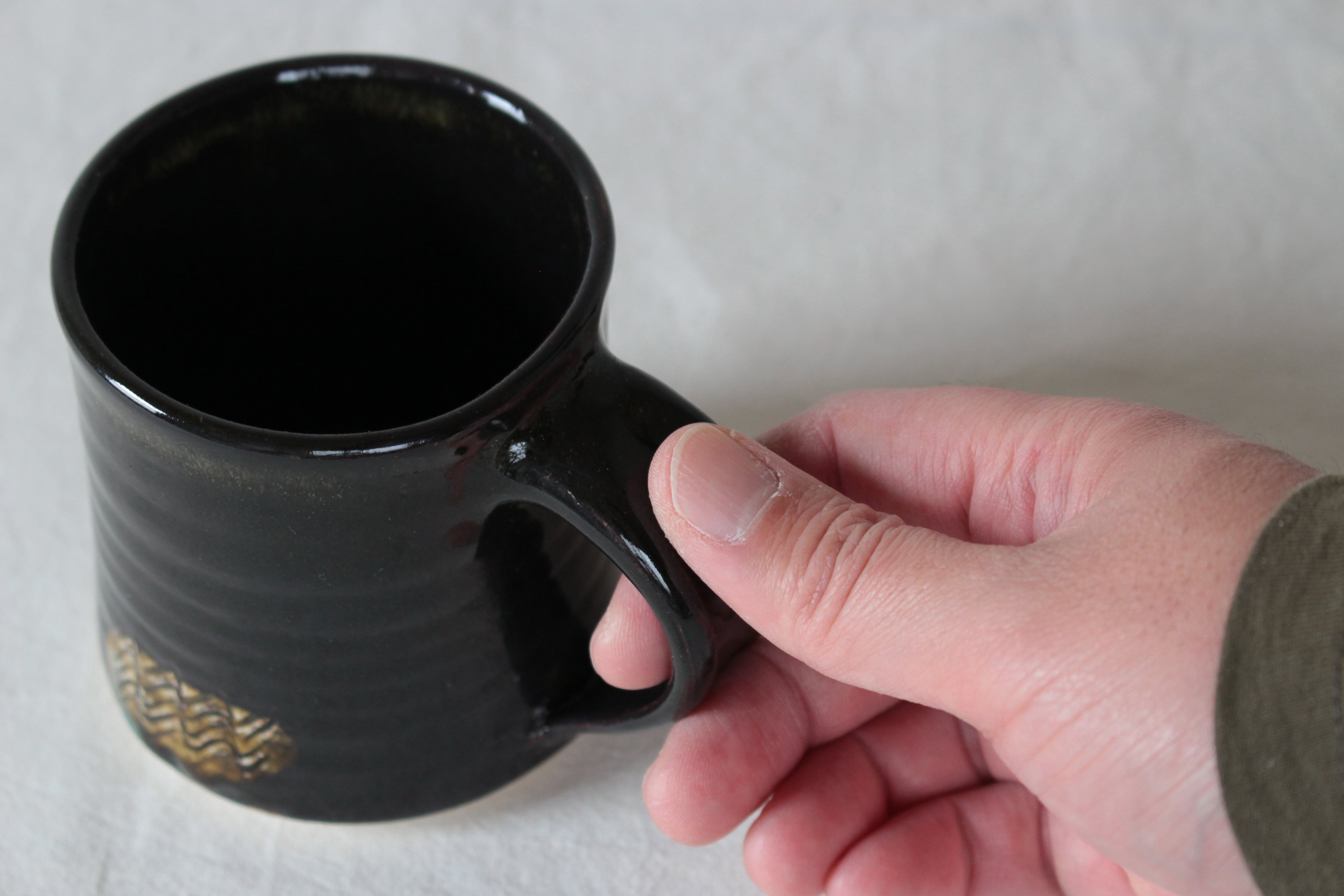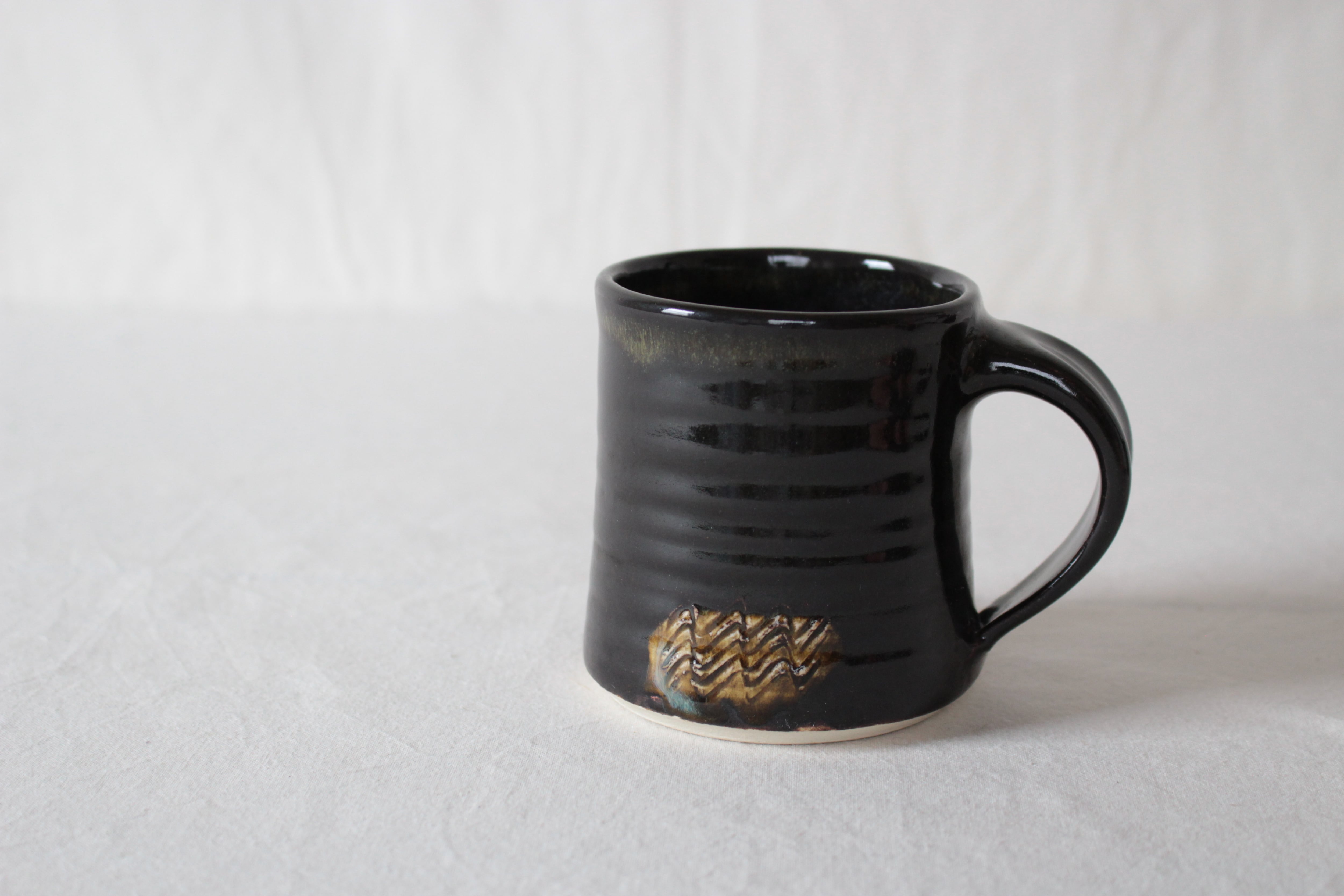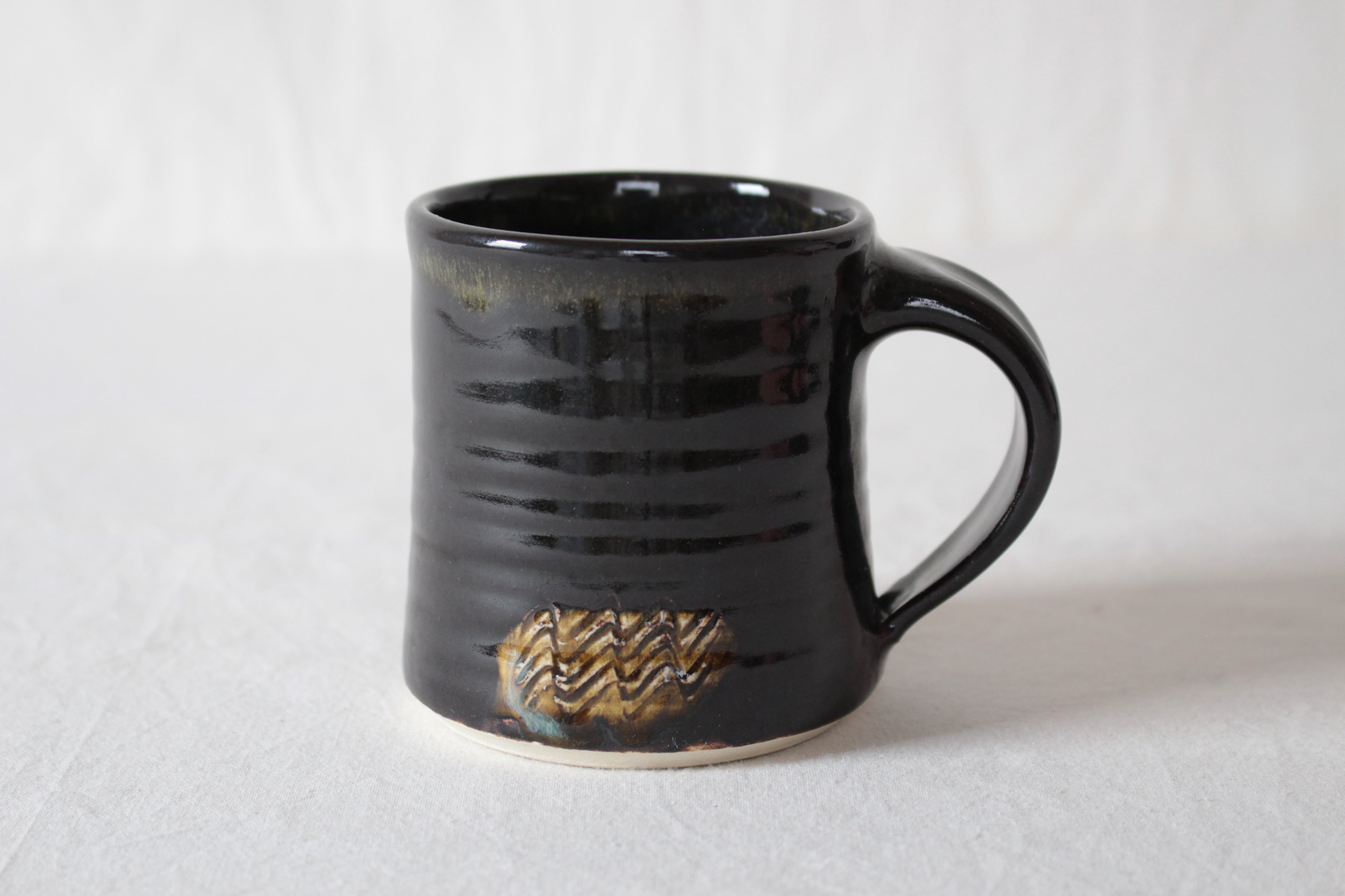 【なみなみ櫛描き模様が素敵なアクセントを添える黒のマグ】