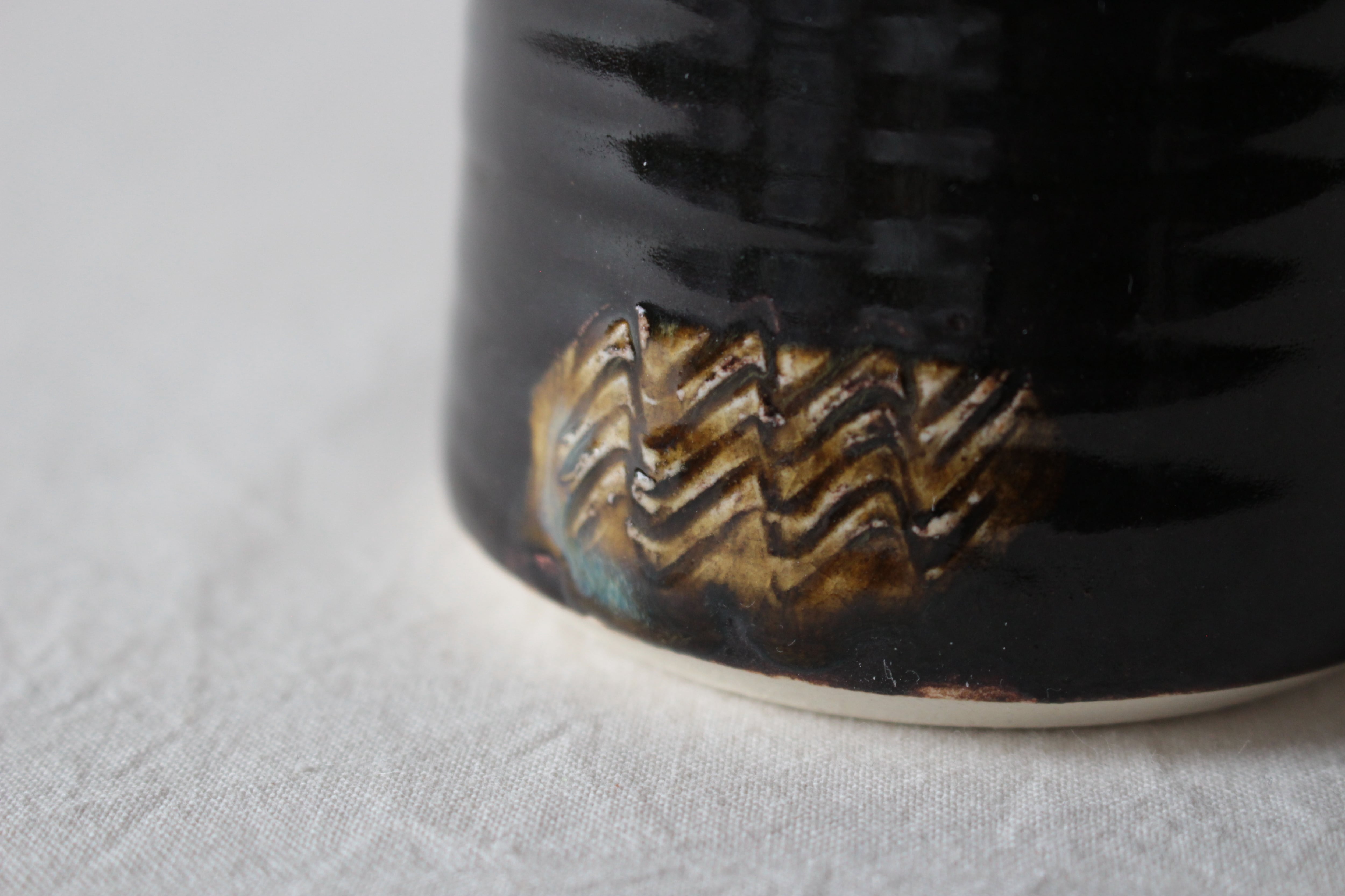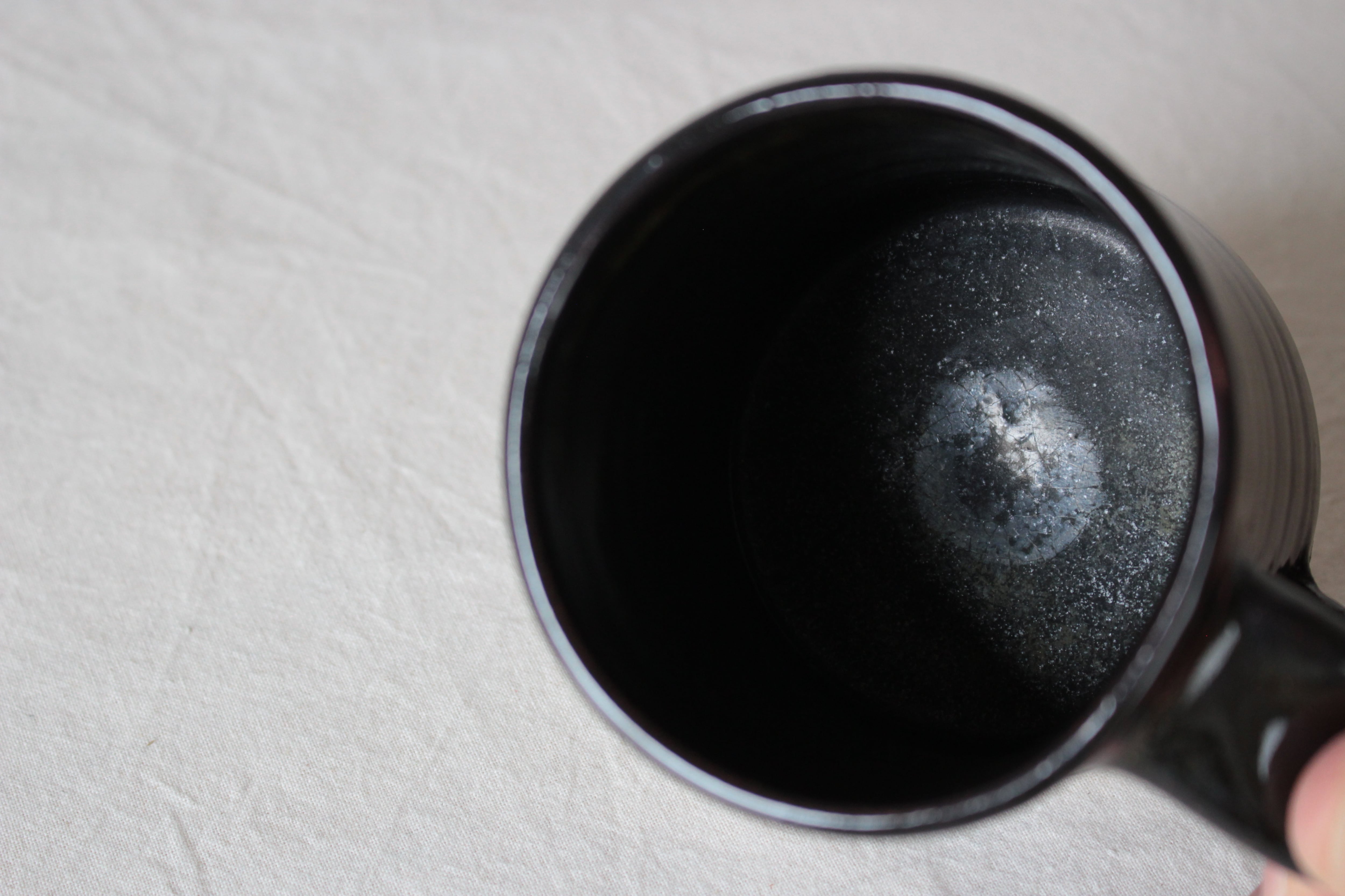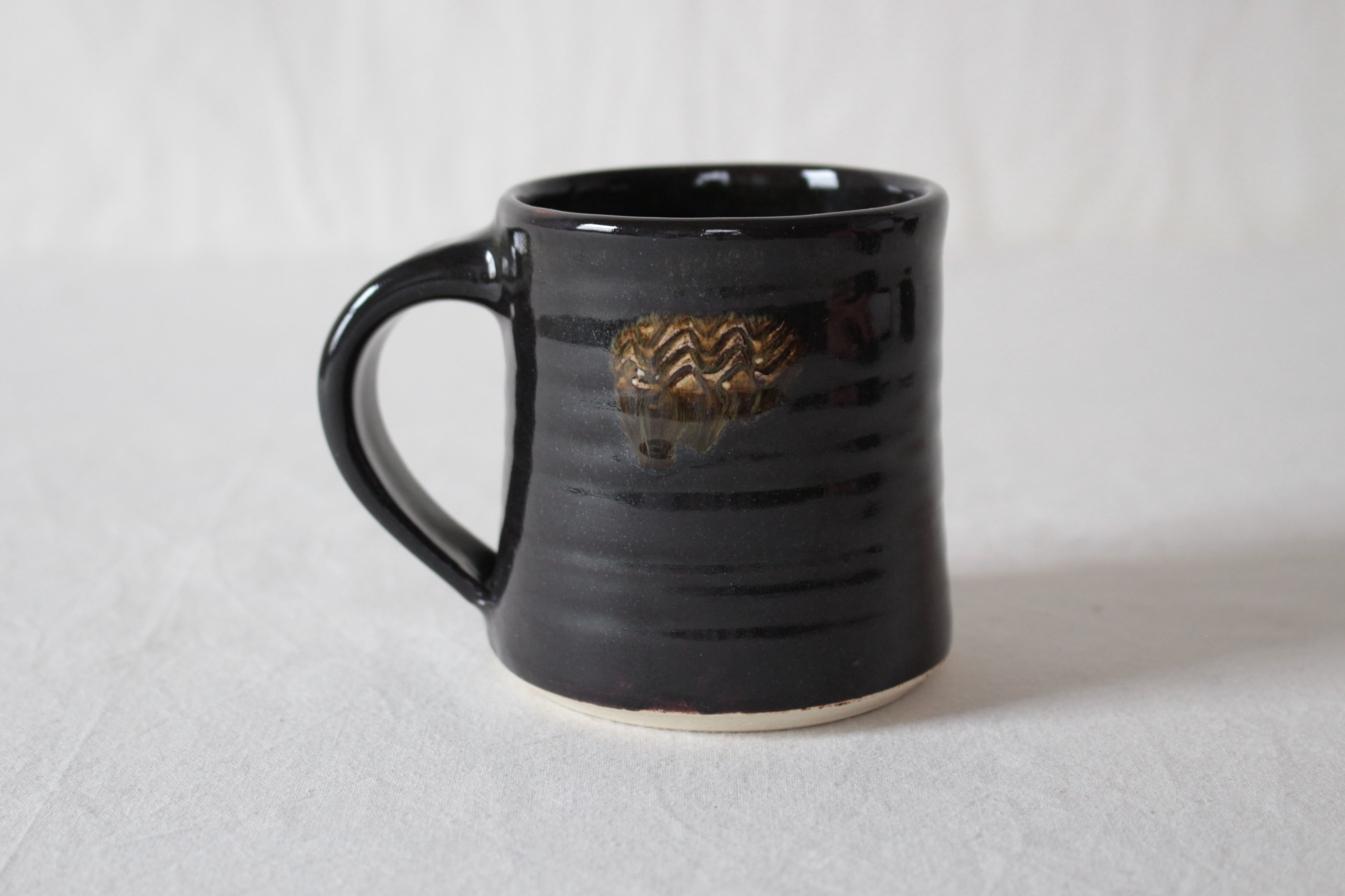 【なみなみ櫛描き模様が素敵なアクセントを添える黒のマグ】