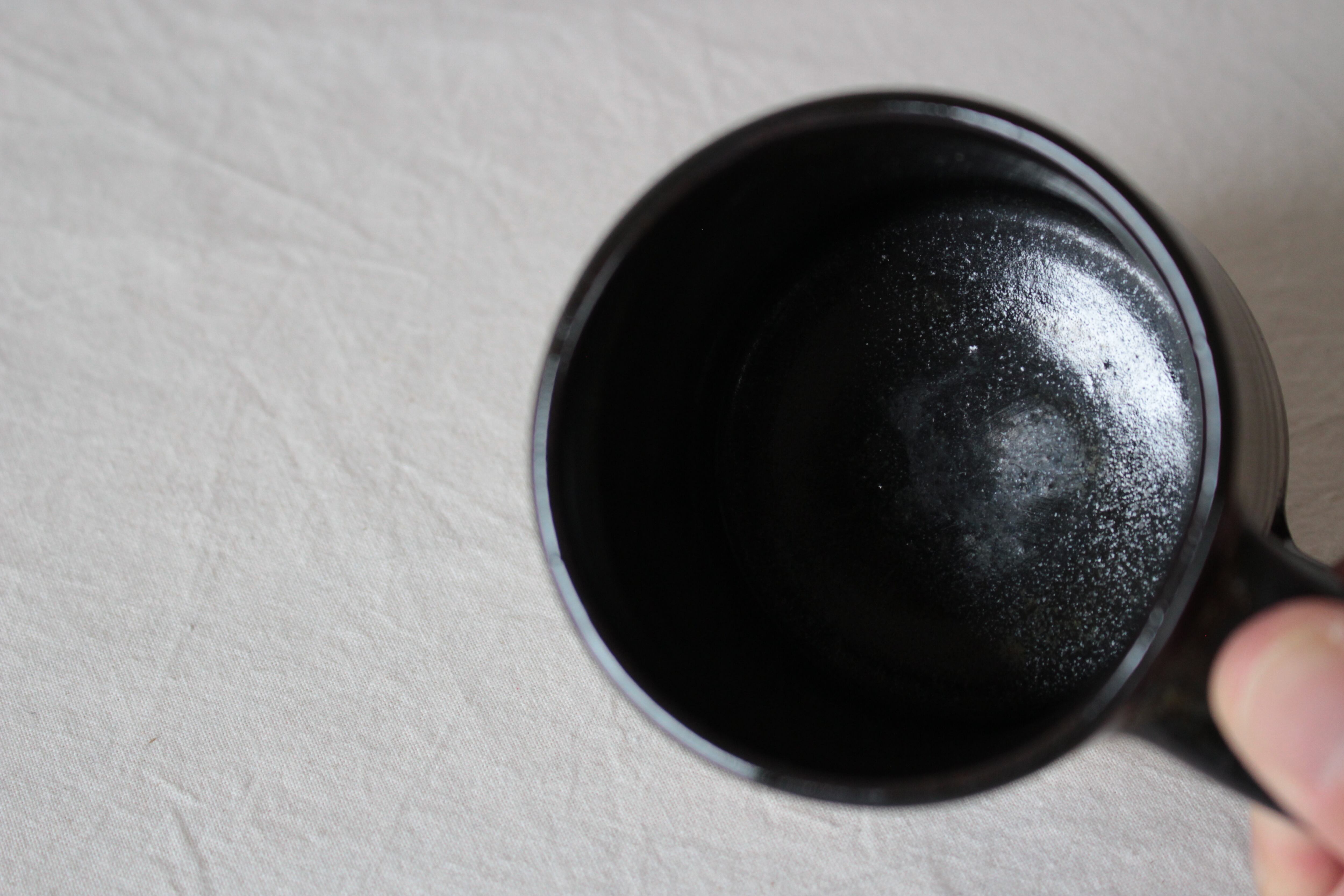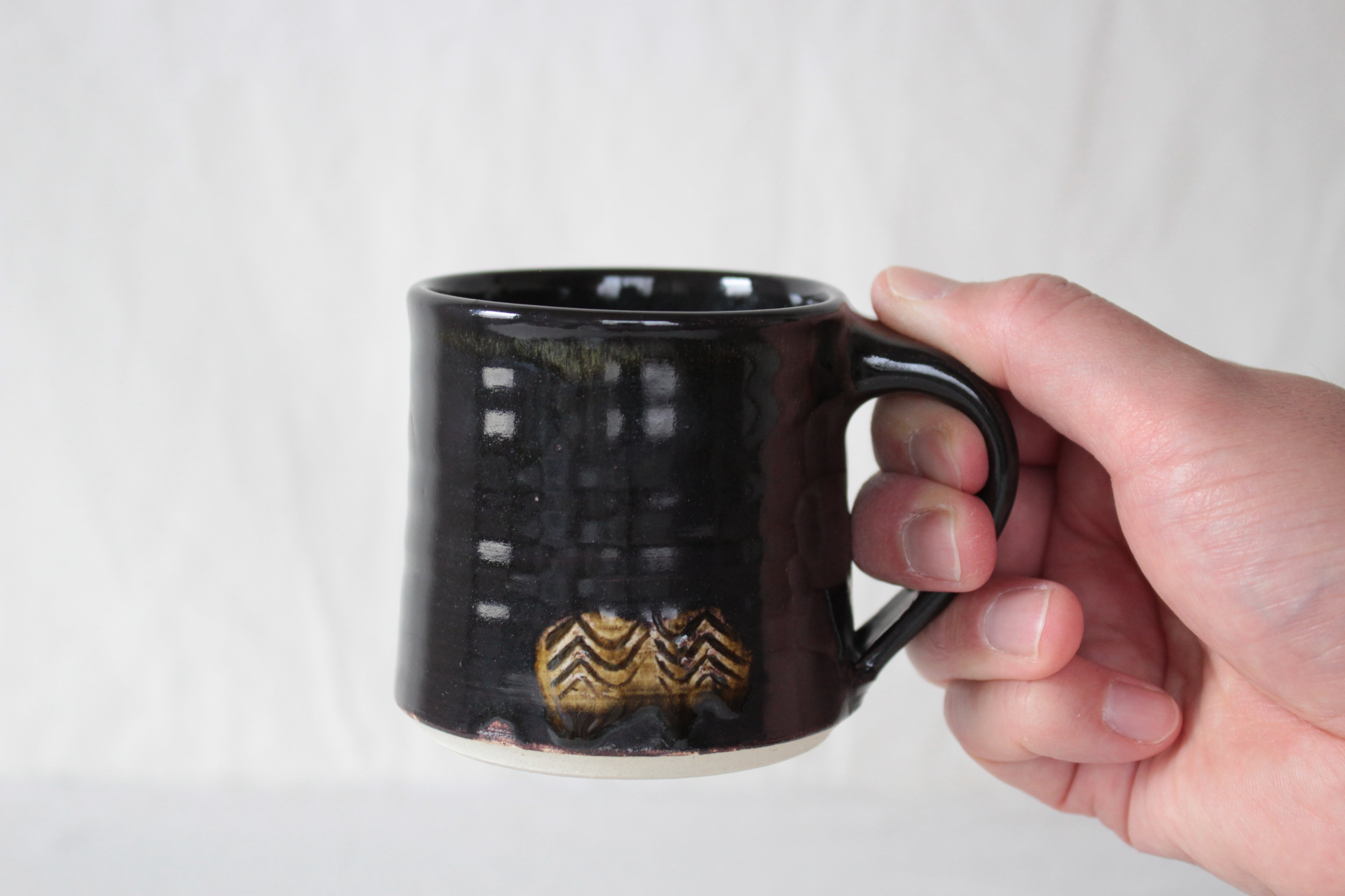 【なみなみ櫛描き模様が素敵なアクセントを添える黒のマグ】