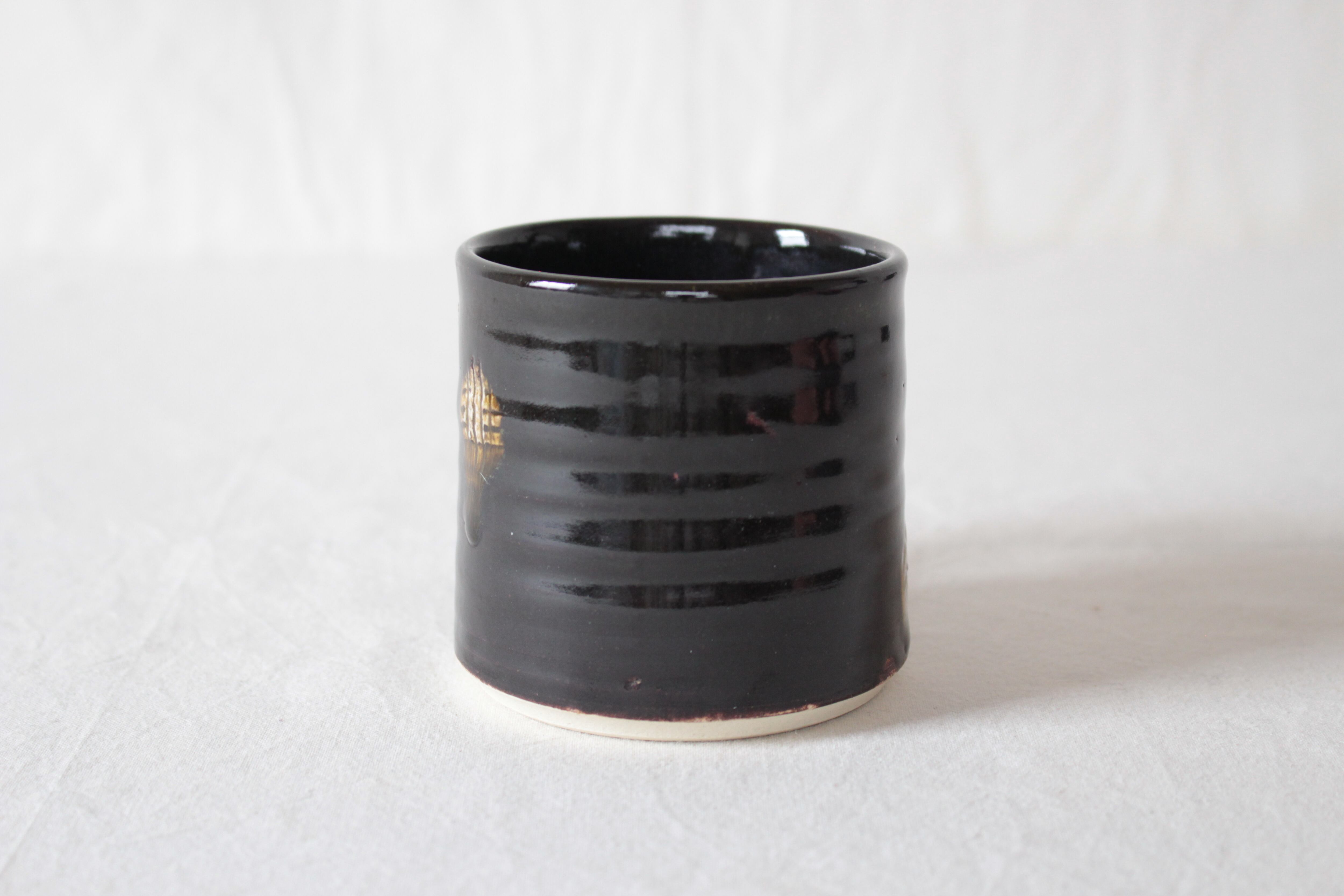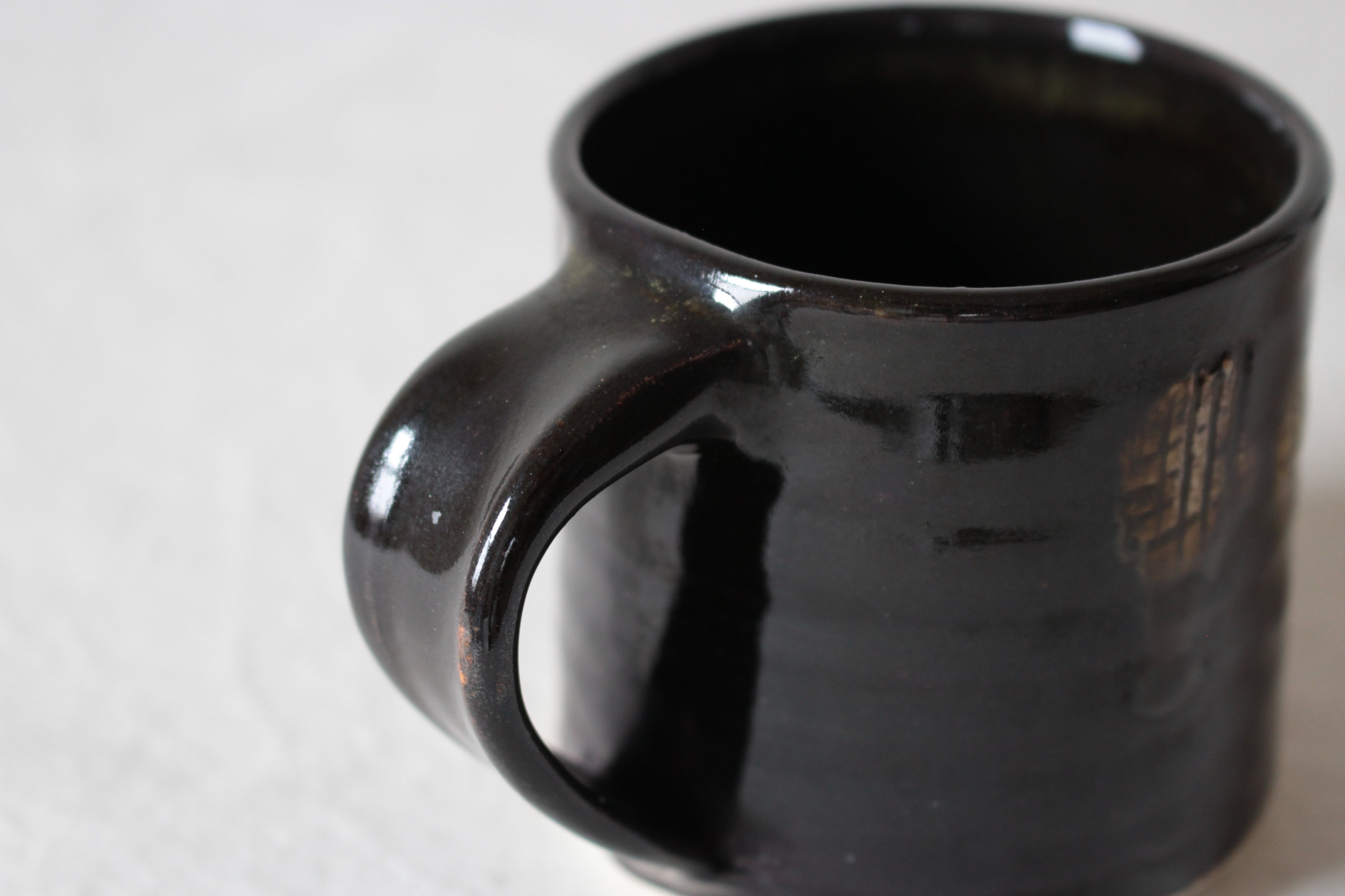 【河合さゆみ】マグカップ(櫛描き・黒釉)